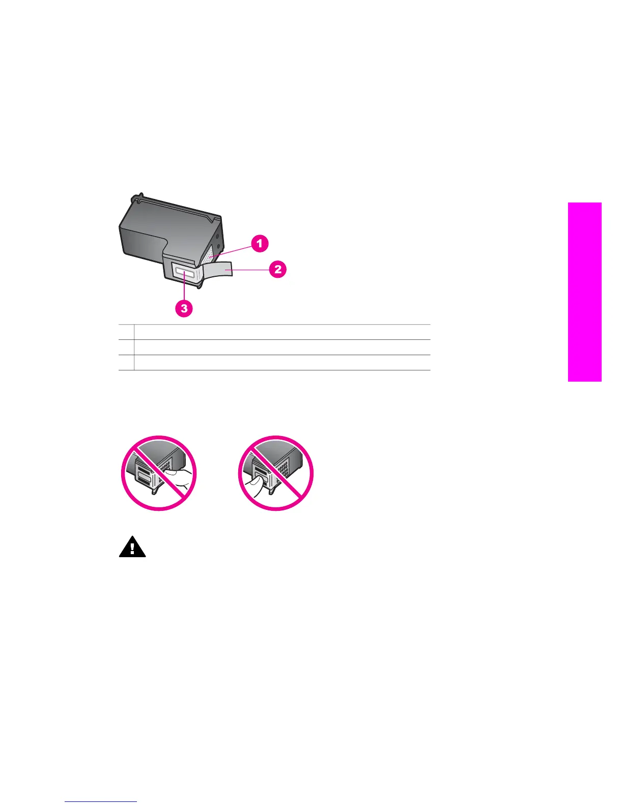 Hold the print cartridges by their black plastic sides, with the label on top. Do not touch