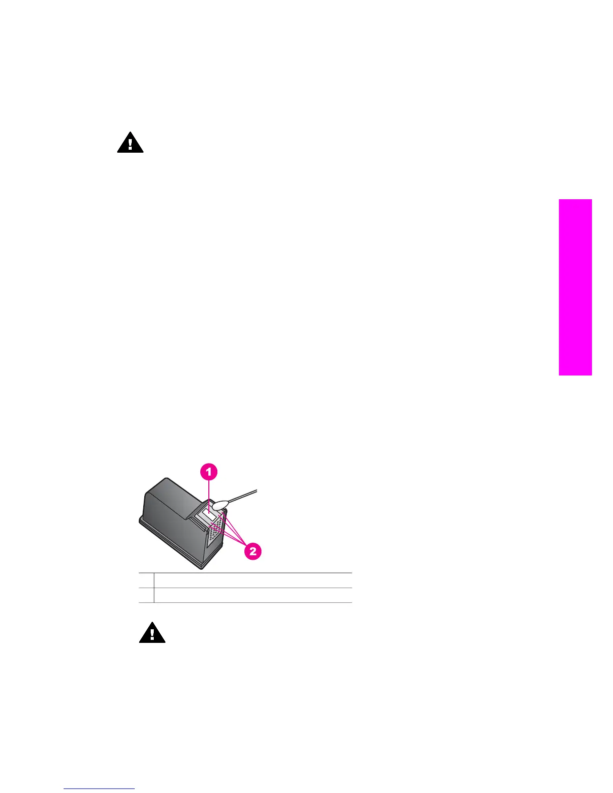 Warning Do not touch the copper-colored contacts or ink nozzles. Touching