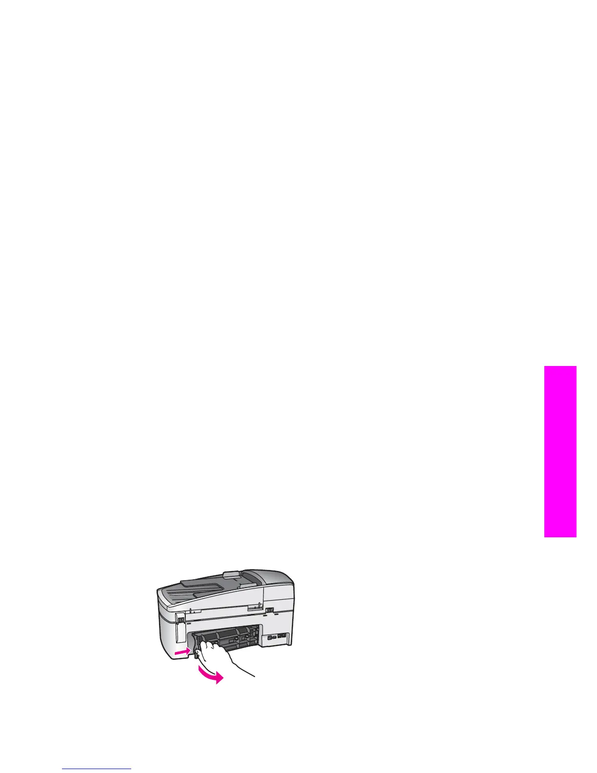 1 Press in the tab on the left side of the rear clean-out door to release the door.