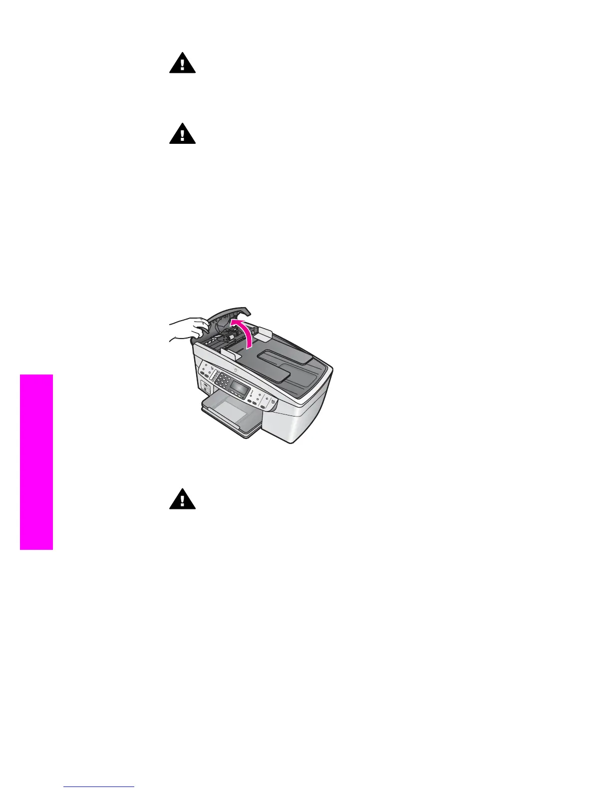 Caution Trying to clear a paper jam from the front of the HP all-in-one