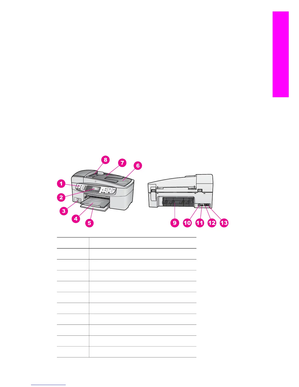 This chapter describes the HP all-in-one hardware features, control panel functions, and