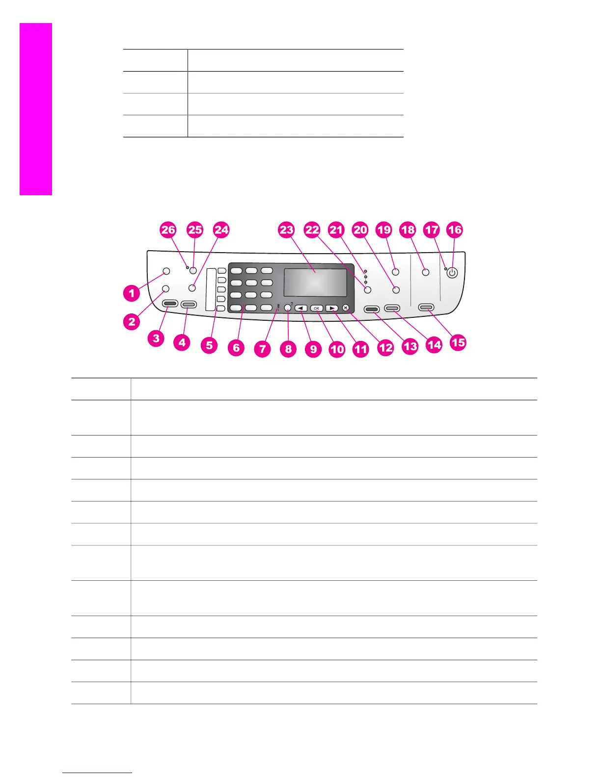 The following diagram and related table provide a quick reference to your HP all-in-one