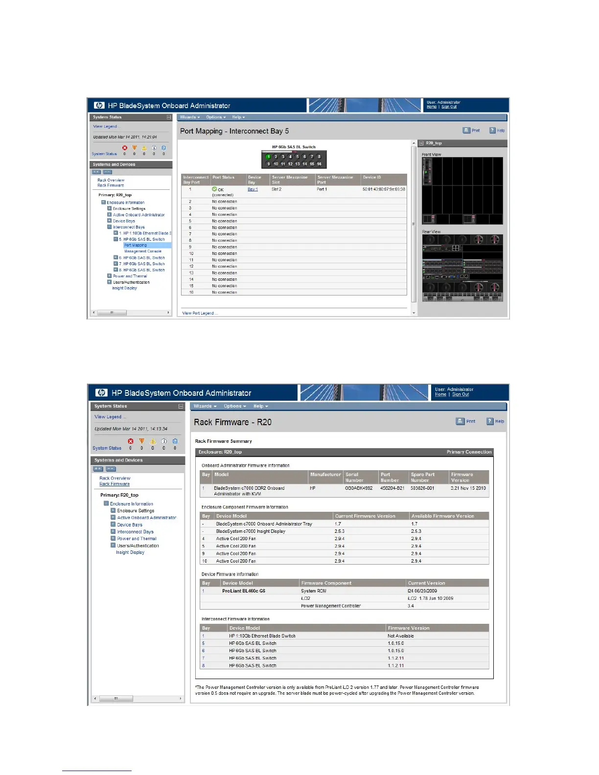 To determine installed firmware versions of components, click Rack Firmware in the navigation