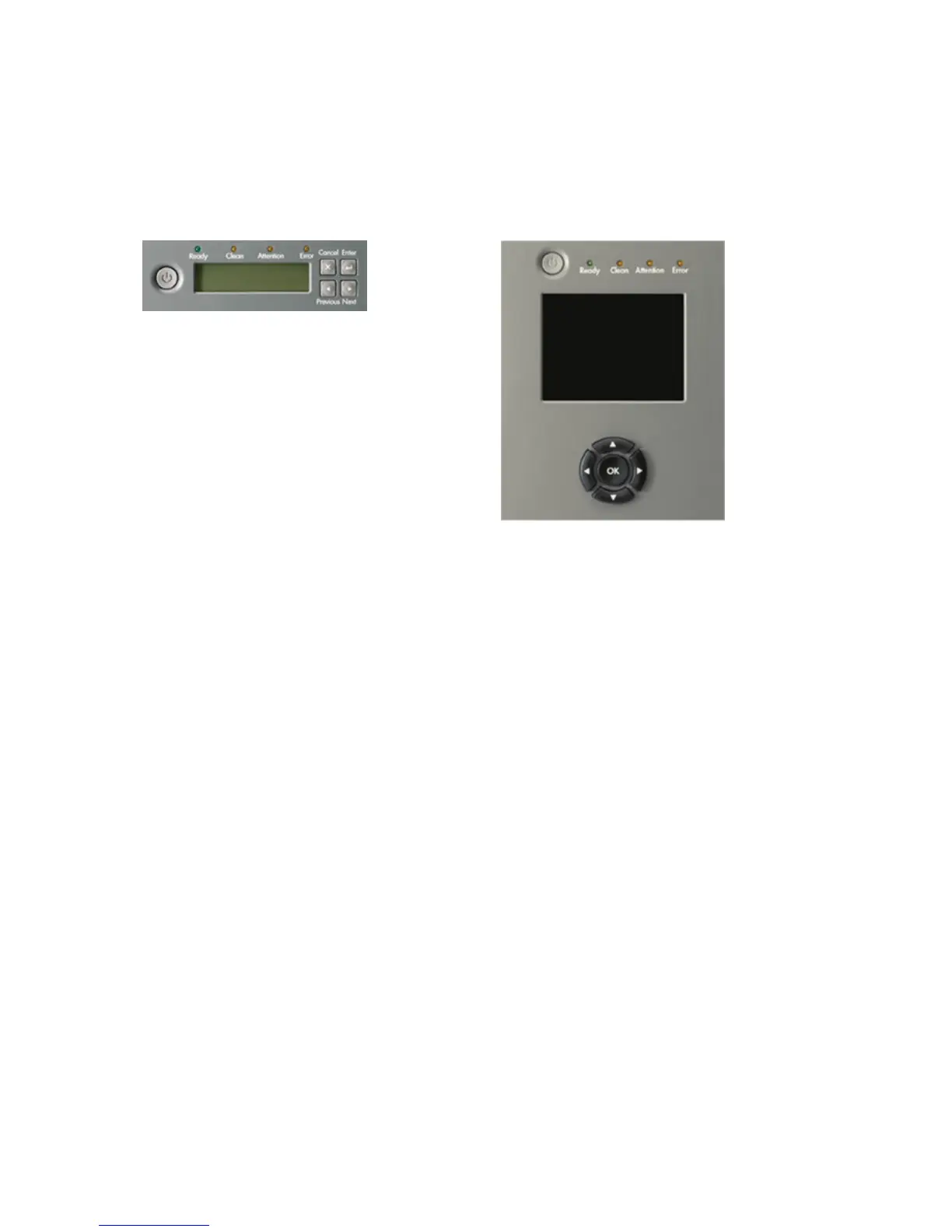 The operator control panel (OCP) has a power button, four LEDs, an LCD screen, and control keys.