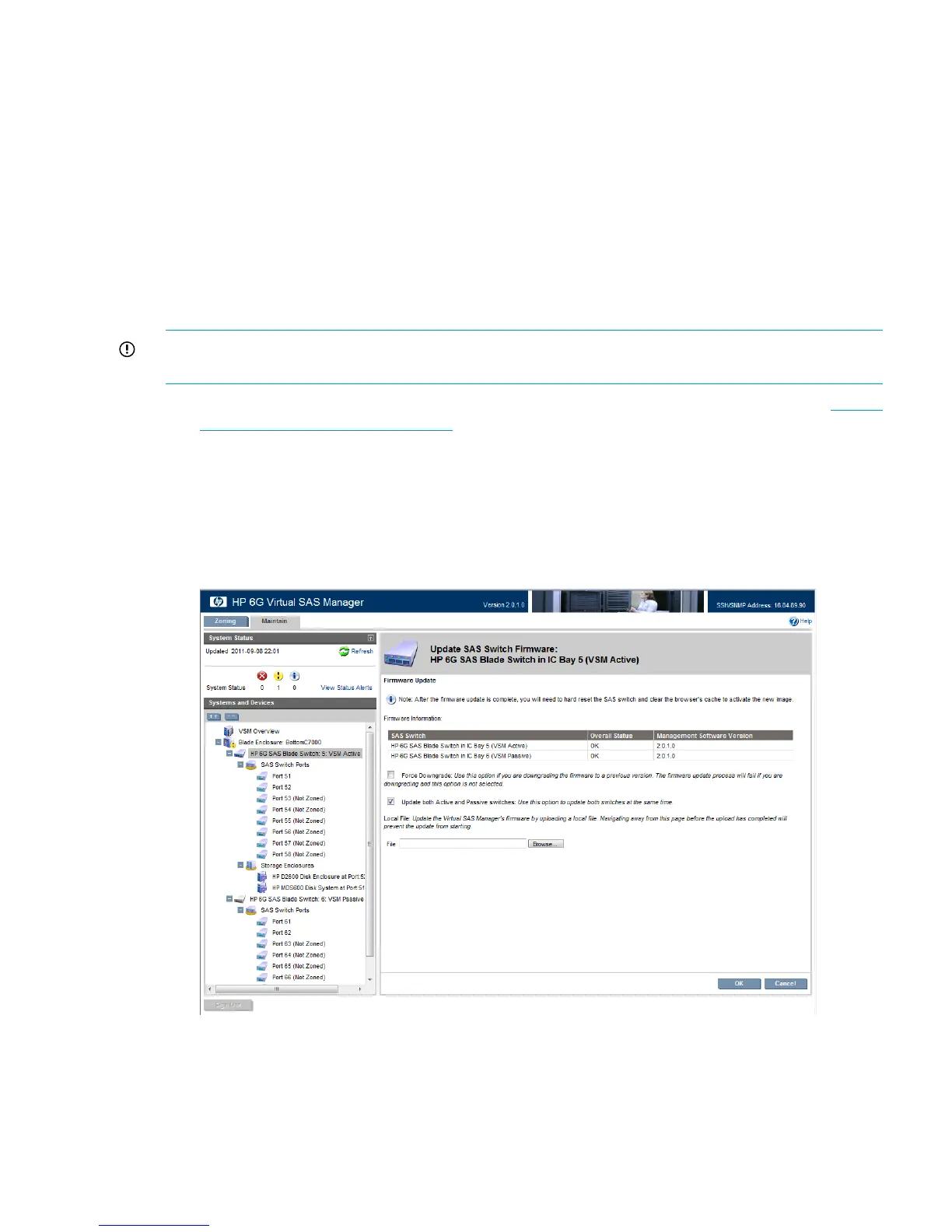 Updating HP 6Gb SAS BL Switch firmware in dual-domain deployments