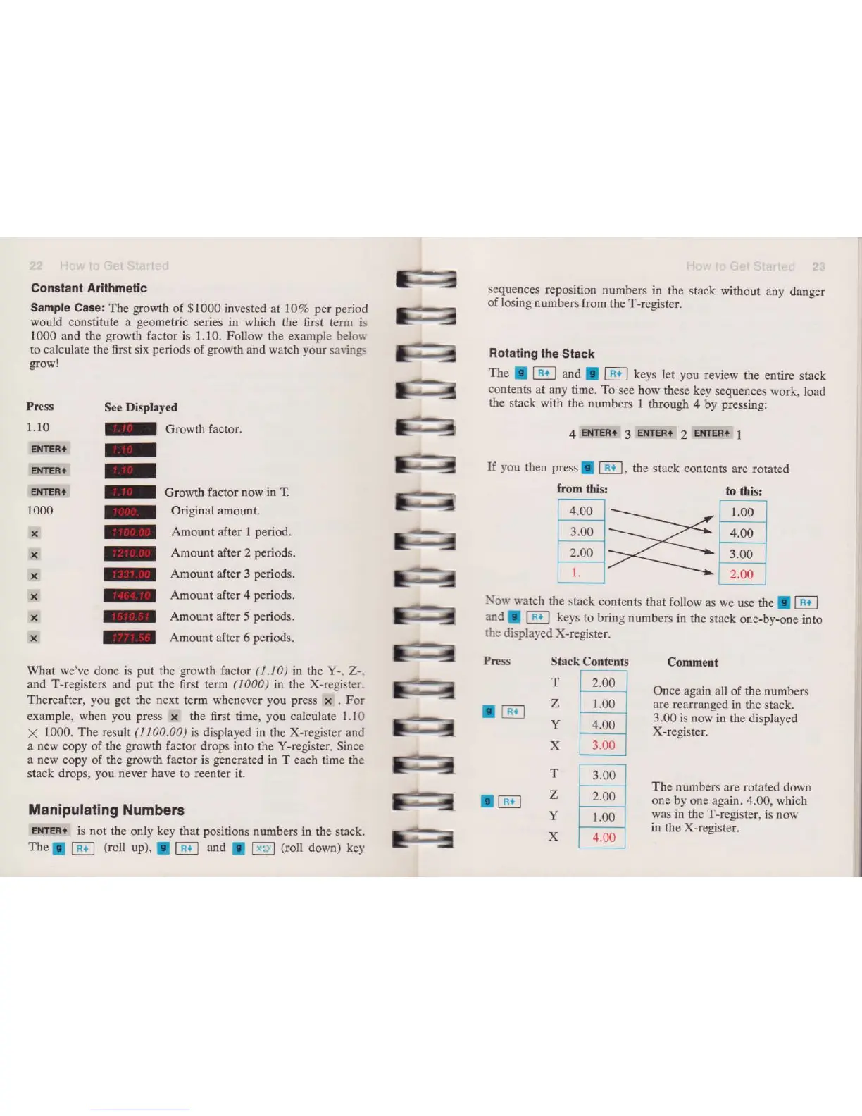 HP 65 - Constant Arithmetic; Manipulating Numbers; Rotating the Stack