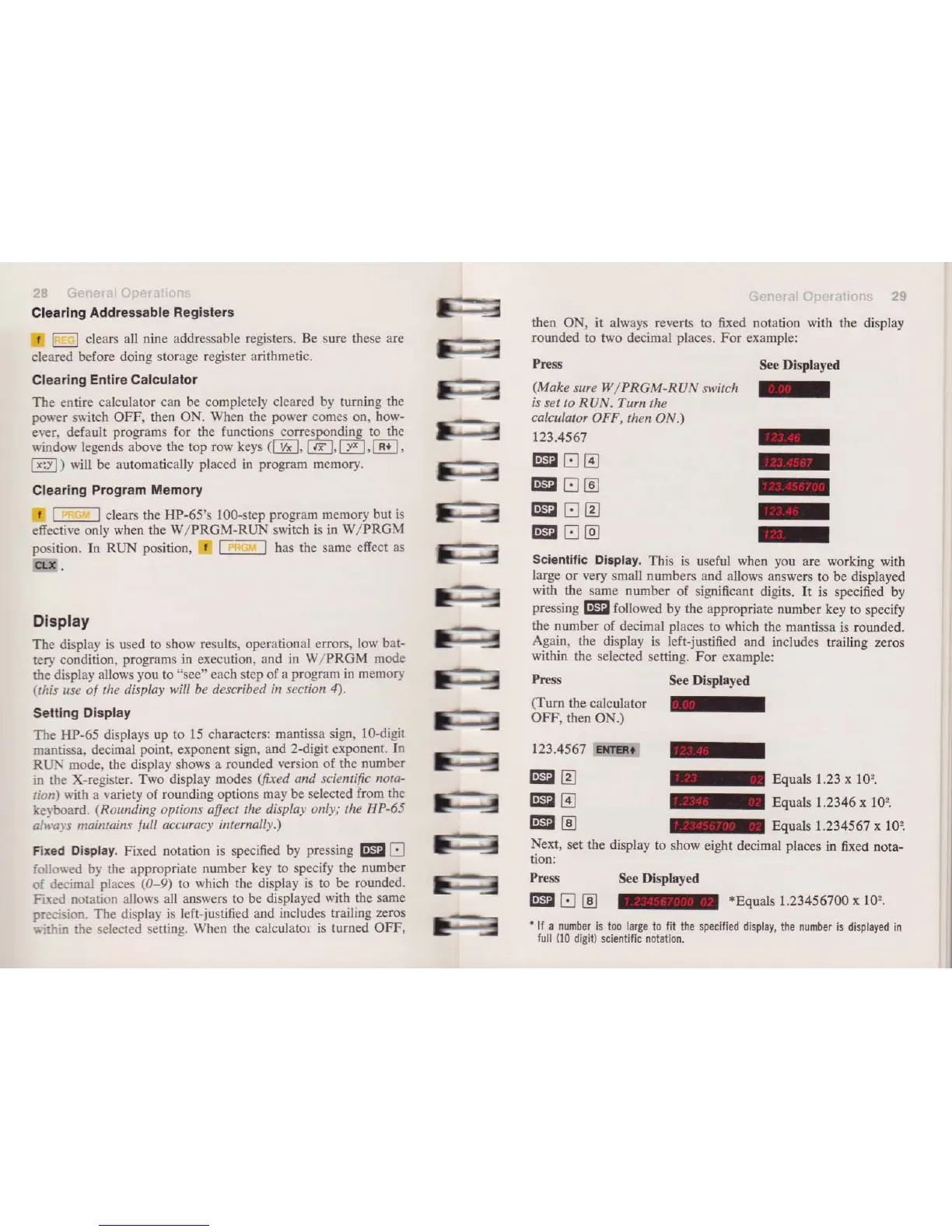 HP 65 - Display; Clearing Addressable Registers; Clearing Entire Calculator; Clearing Program Memory