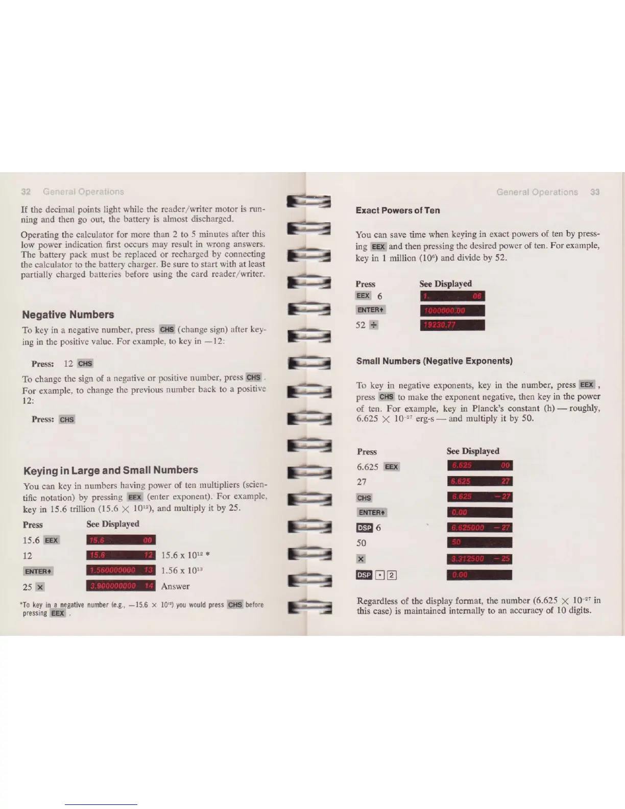 HP 65 - Negative Numbers; Keying in Large and Small Numbers; Exact Powers of Ten; Small Numbers (Negative Exponents)