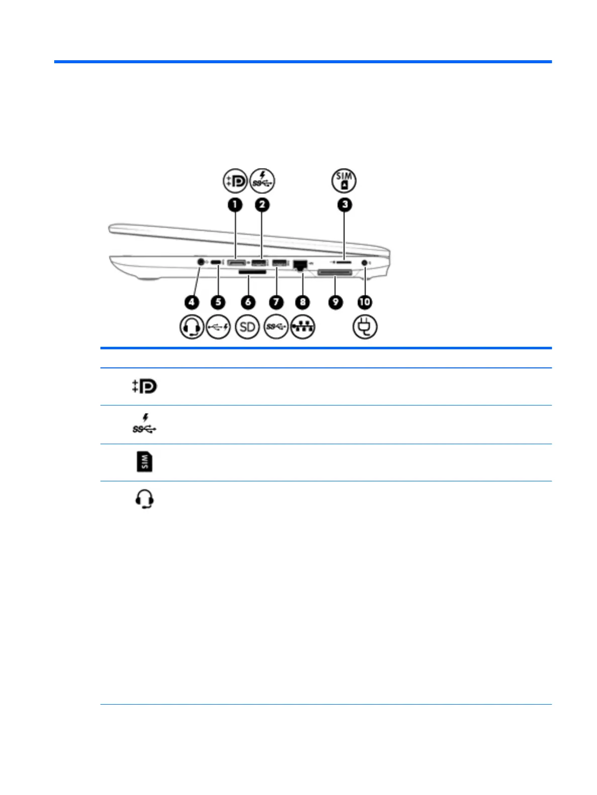 (2) USB 3.x charging port When the computer is on, connects and charges a USB device,