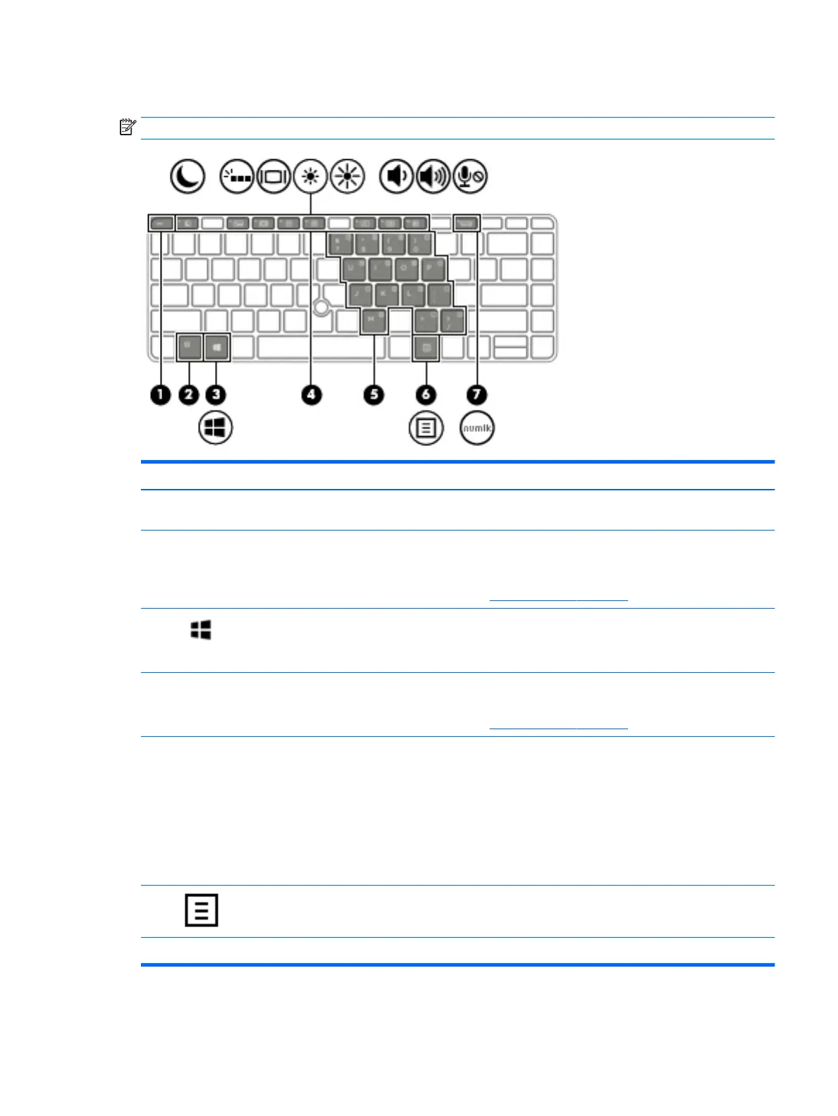 (7) num lk key Turns the embedded numeric keypad on and o.