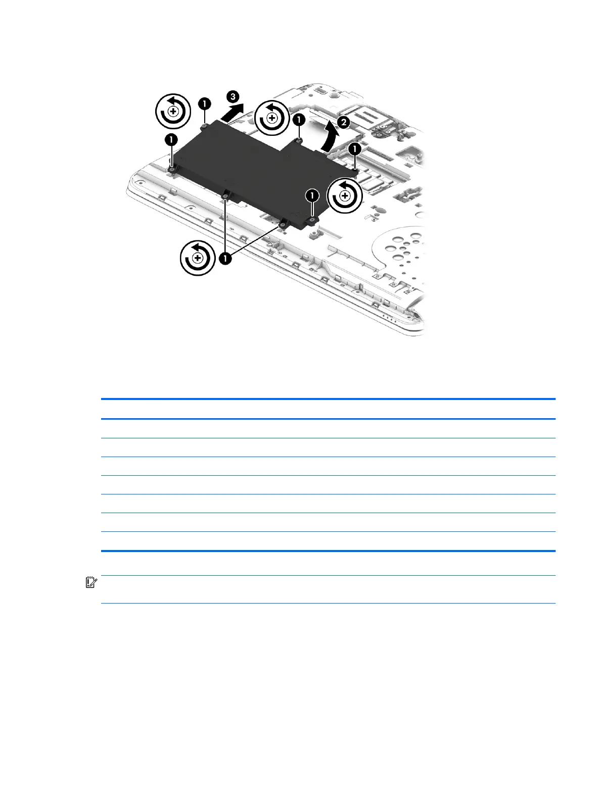 IMPORTANT: Make special note of each screw and screw lock size and location during removal and