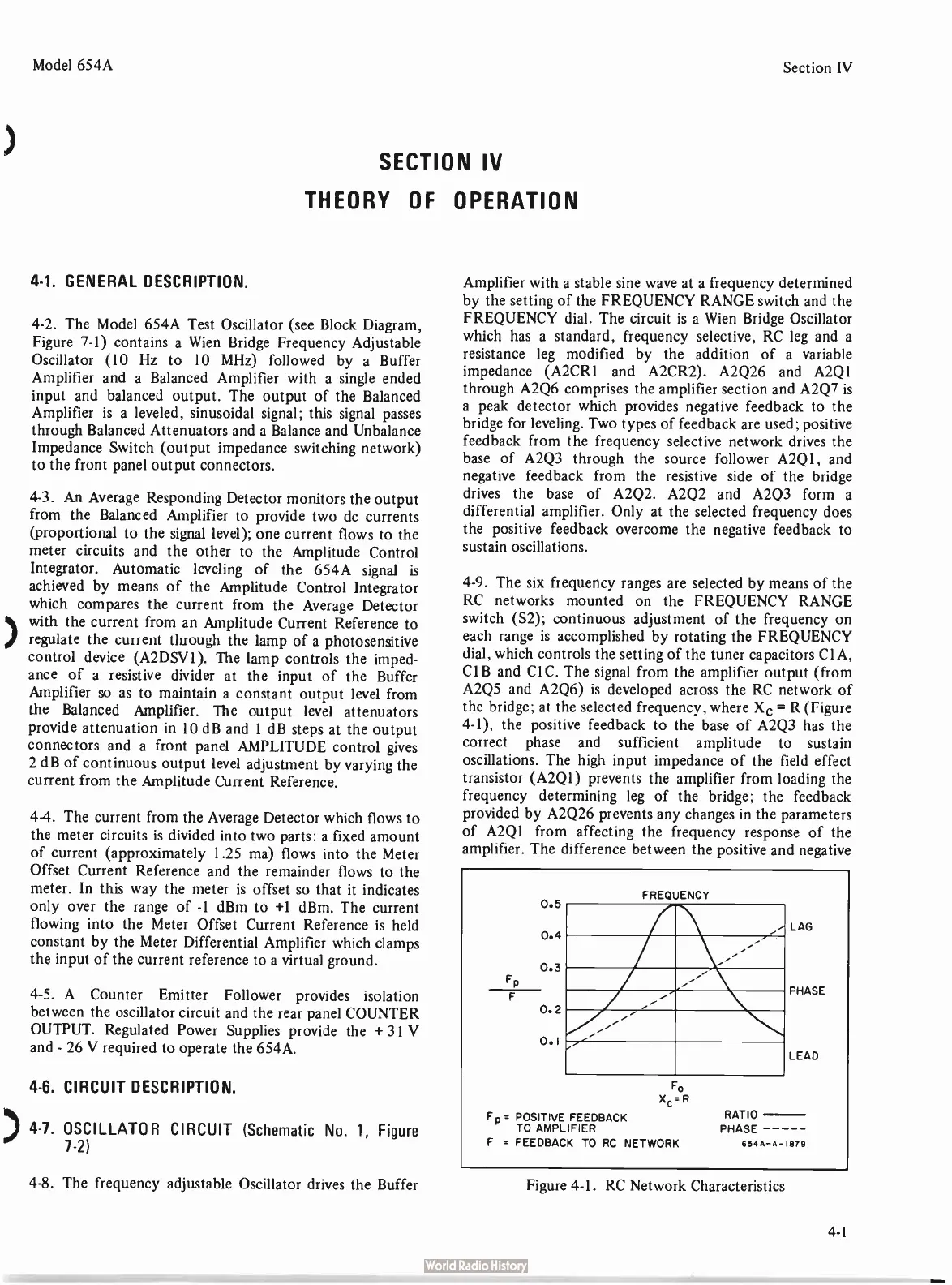HP 654A - Section IV: Theory of Operation; 4-1. General Description; 4-7. Oscillator Circuit; 4-11. Buffer Amplifier