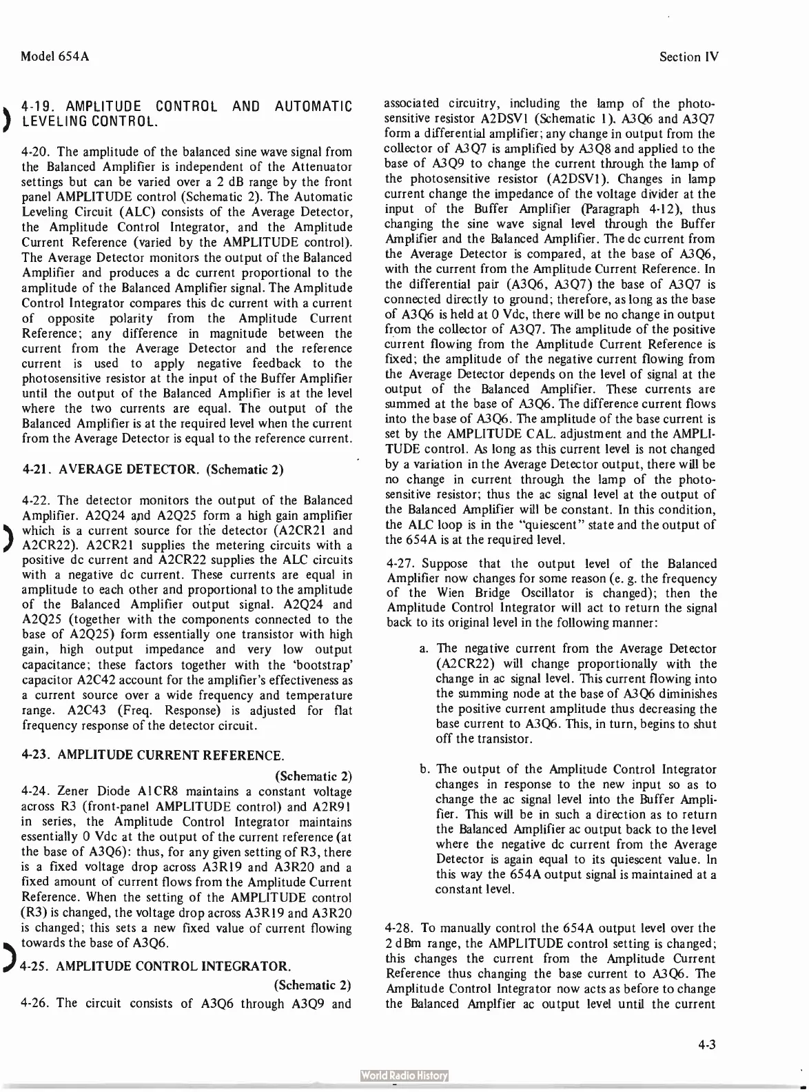 HP 654A - 4-19. Amplitude Control and Automatic Leveling Control; 4-25. Amplitude Control Integrator