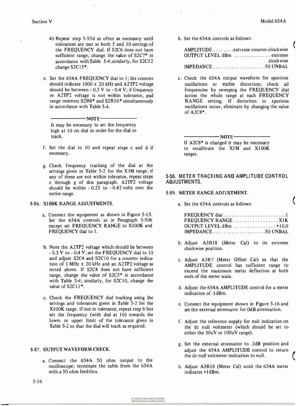 HP 654A - 5-65. Level Flatness Adjustments; 5-66. 75 UNBAL Flatness