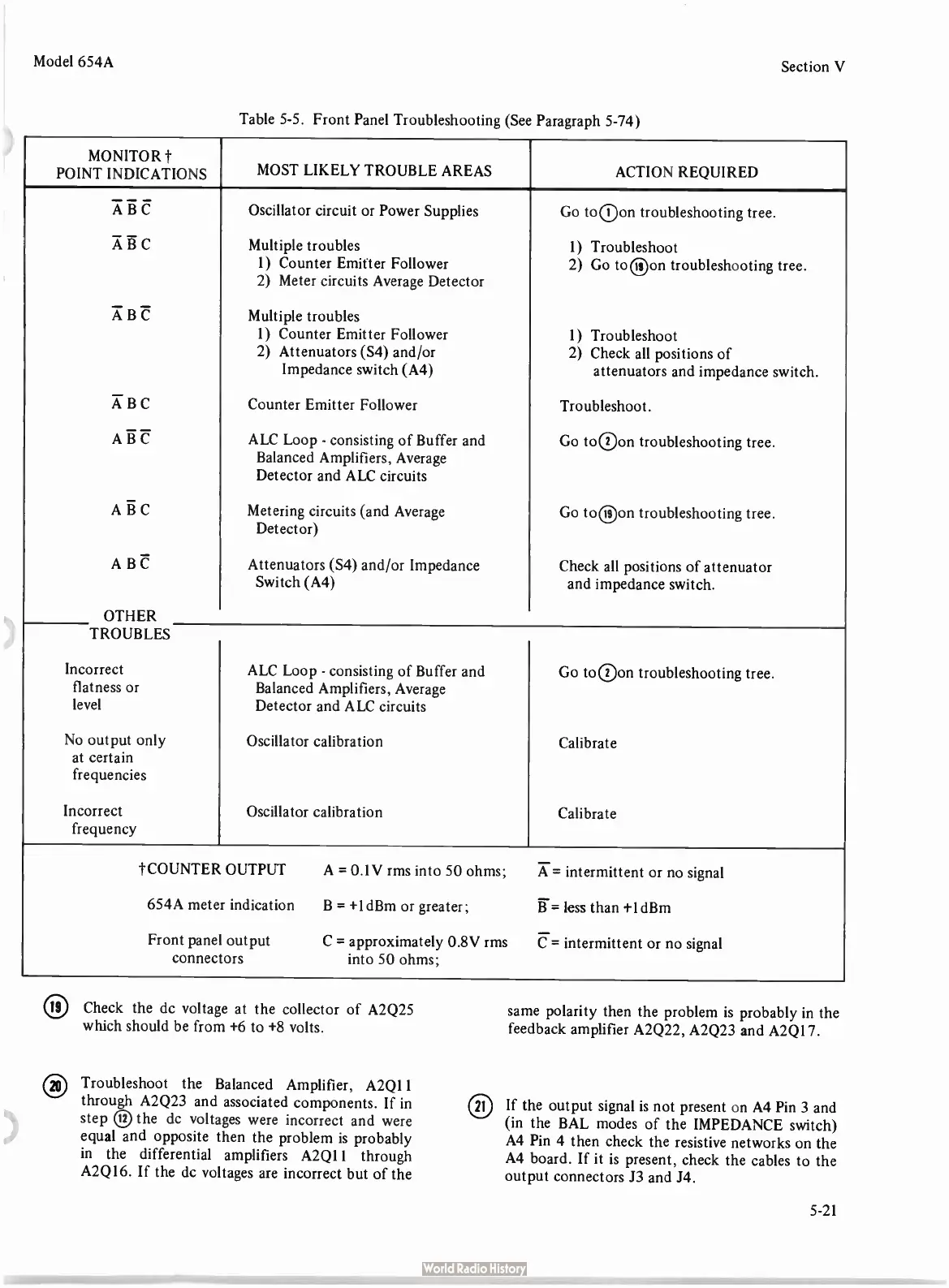 HP 654A - 5-84. Troubleshooting the Buffer Amplifier; 5-86. Troubleshooting the Balanced Amplifier; 5-88. Trouble Isolation in the Remainder of the Leveling Loop
