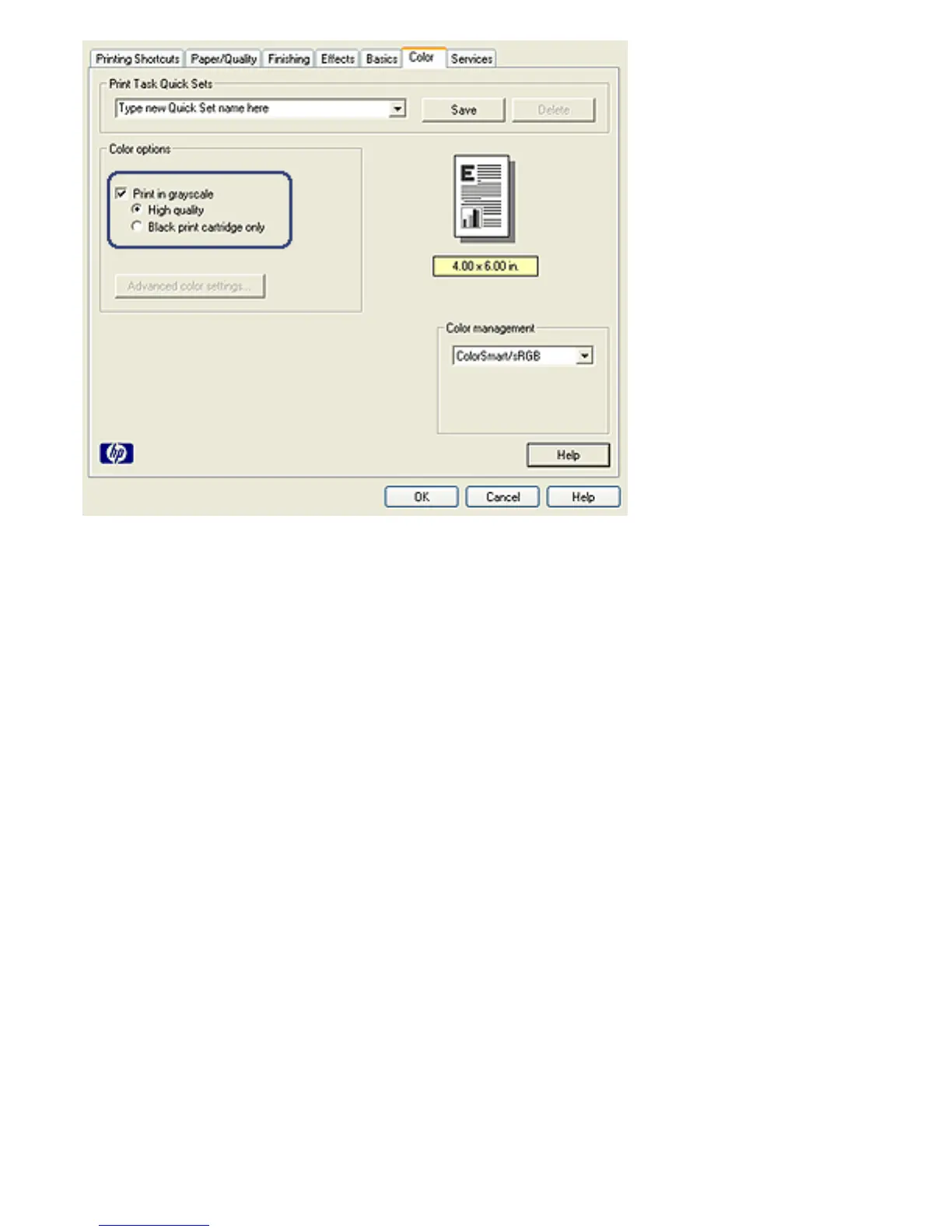 3. Select the Print in grayscale check box.