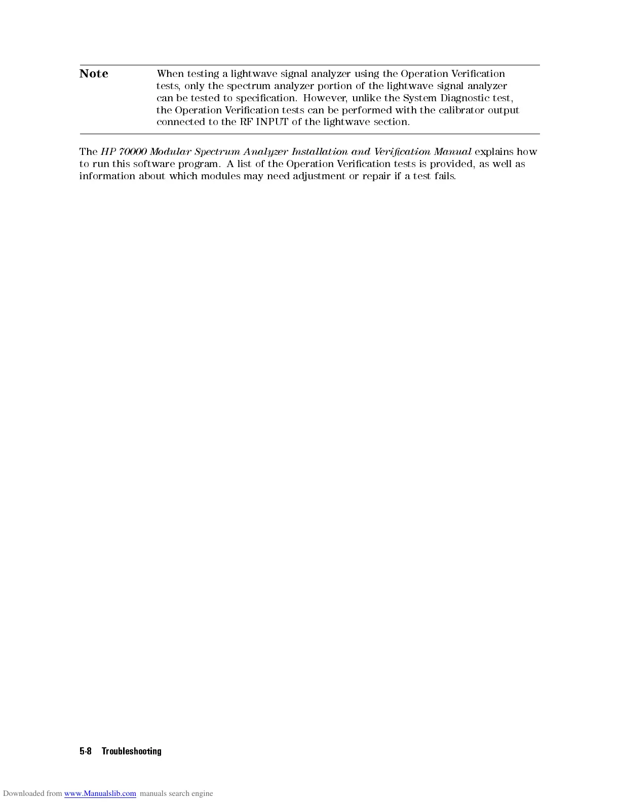 HP 70000 Modular Spectrum Analyzer Installation and Verication Manual