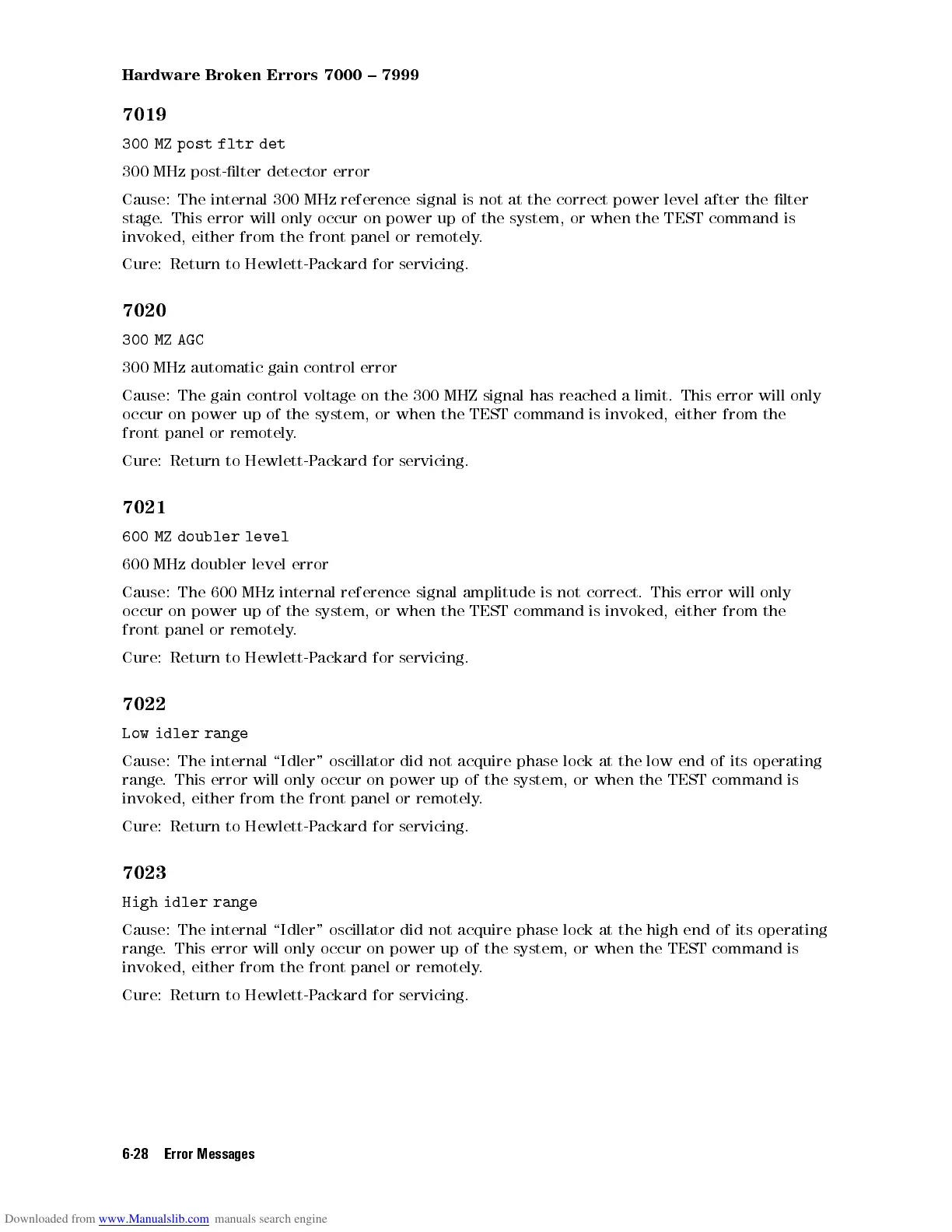 stage. This error will only occur on power up of the system, or when the TEST command is