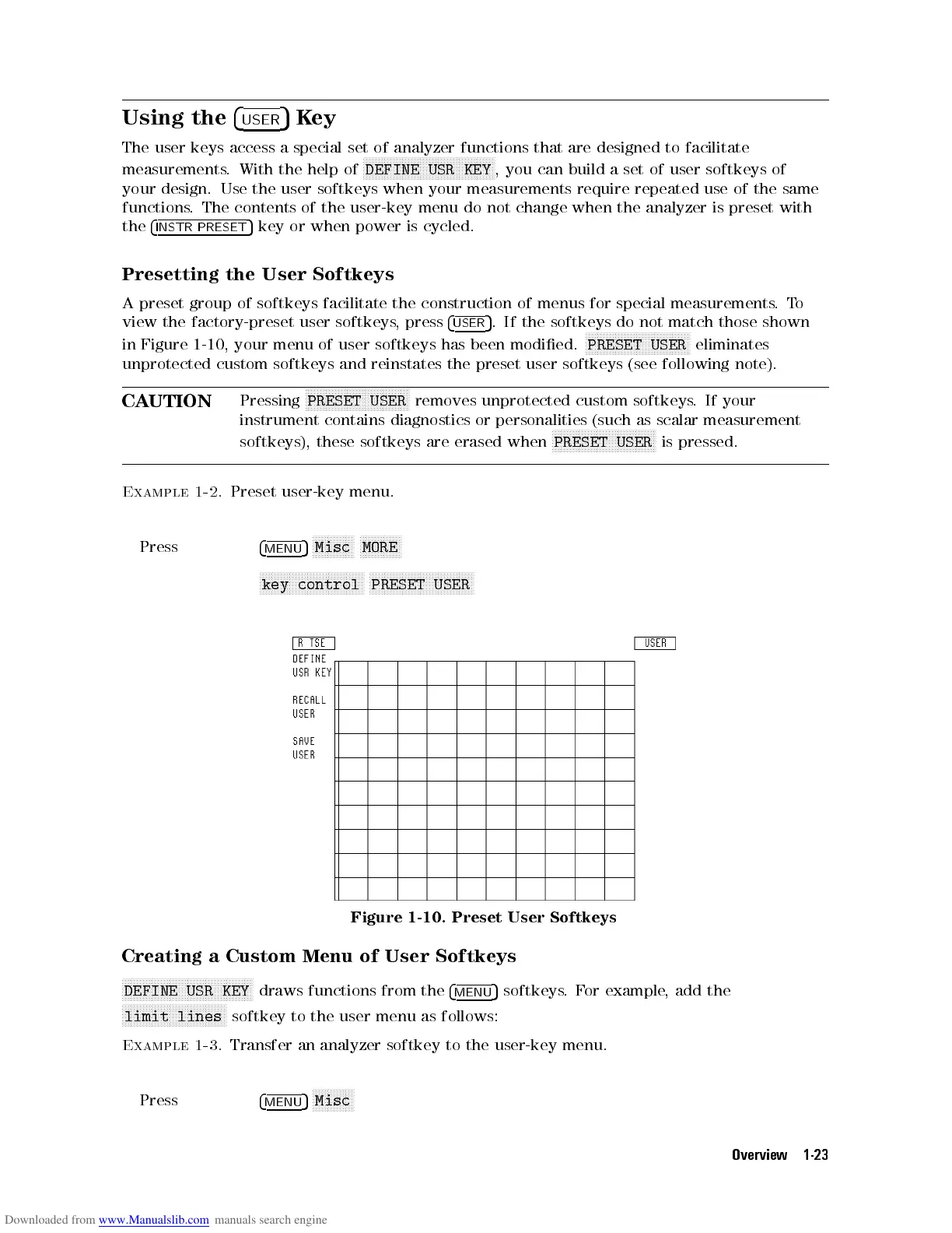your design. Use the user softkeys when your measurements require repeated use of the same