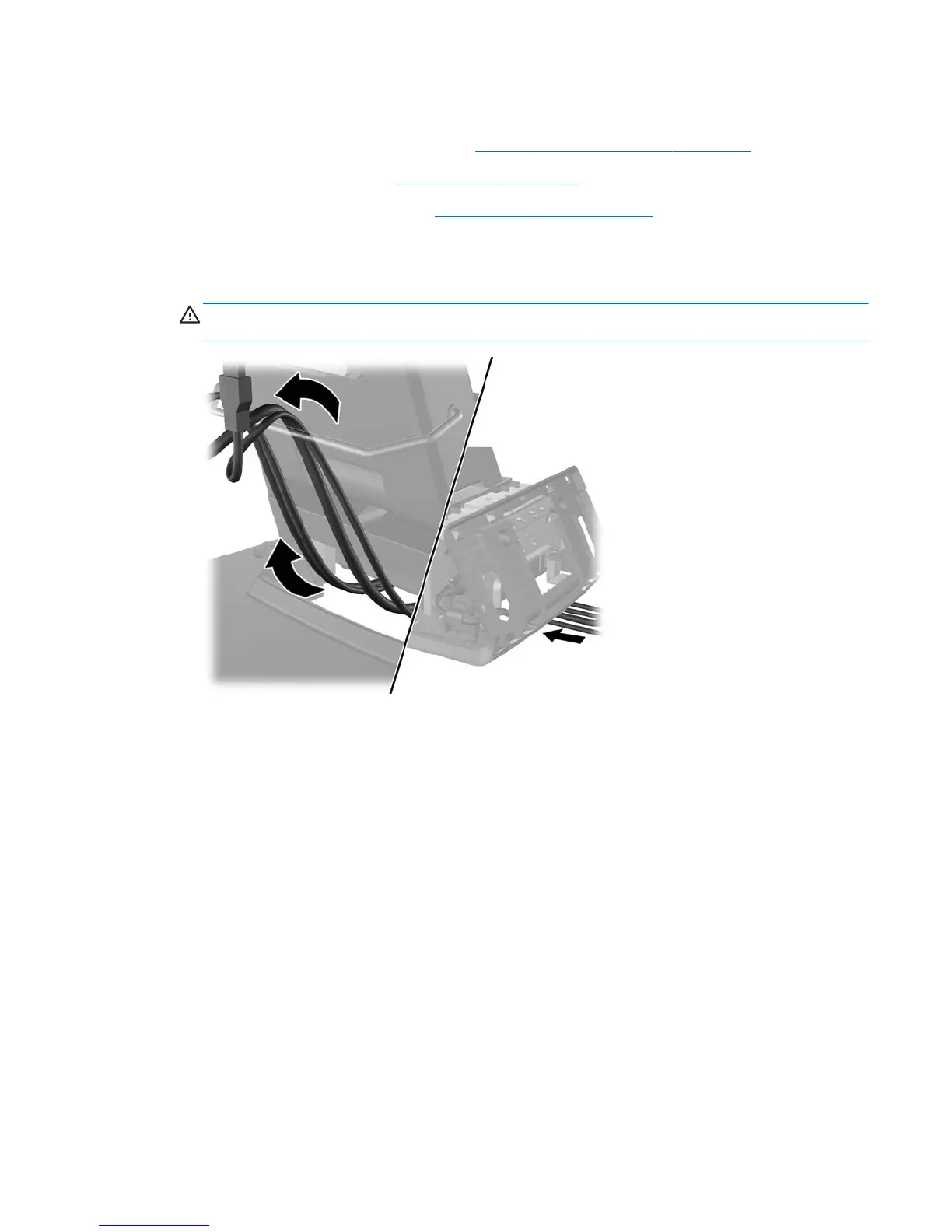 4. Route the cables underneath the rear of the base, then through the hole in the center of the
