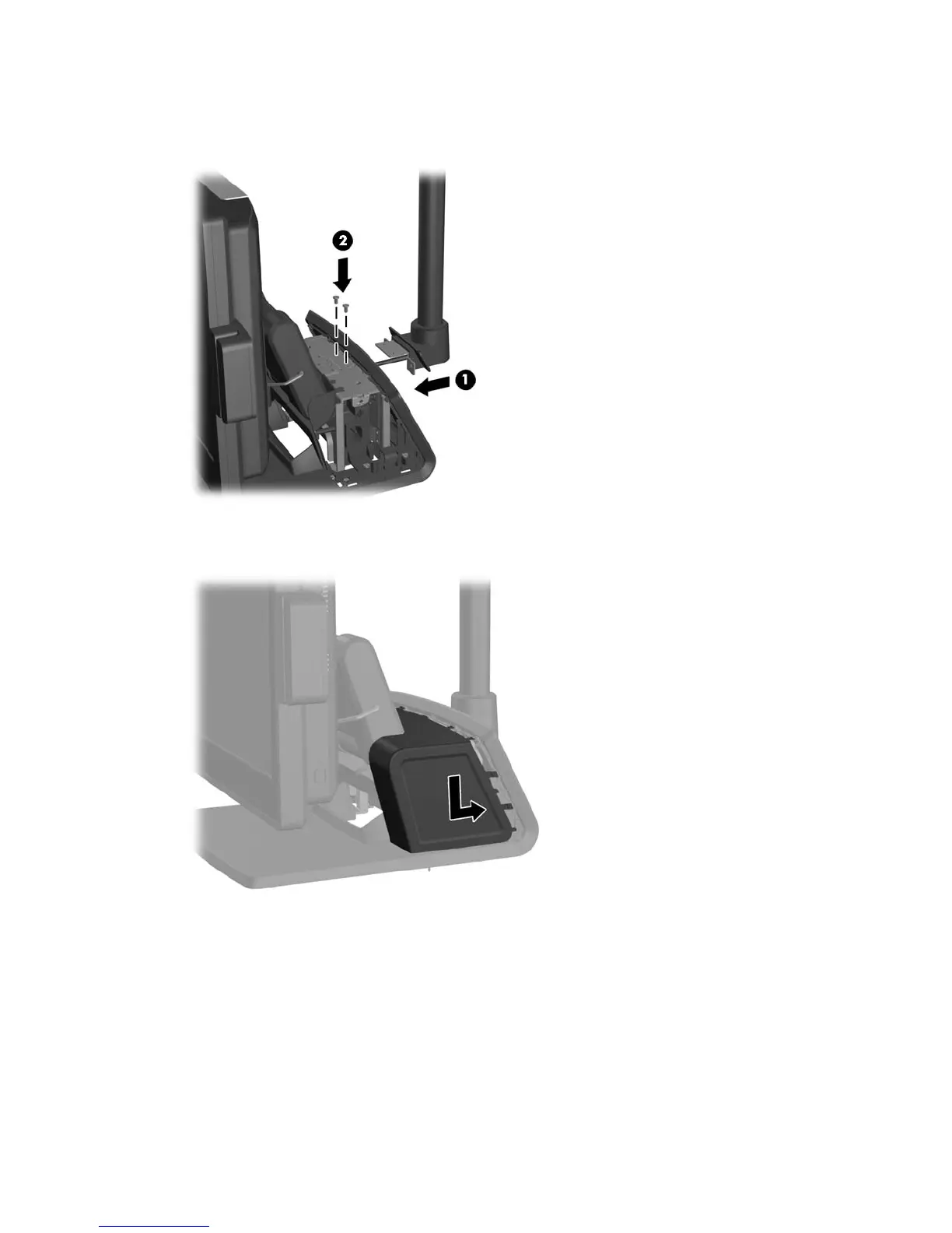10. Slide the VFD mounting bracket into the mounting hole on the rear of the RP7 base (1), and