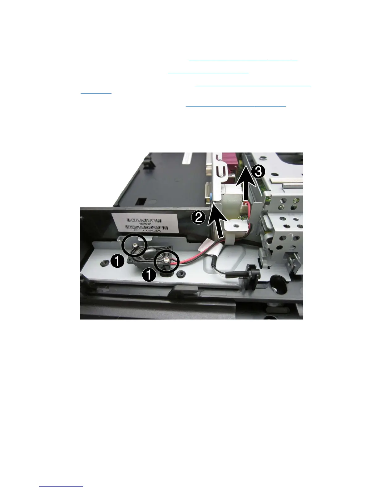 5. Remove the two Phillips screws (1) that secure the speaker to the computer.