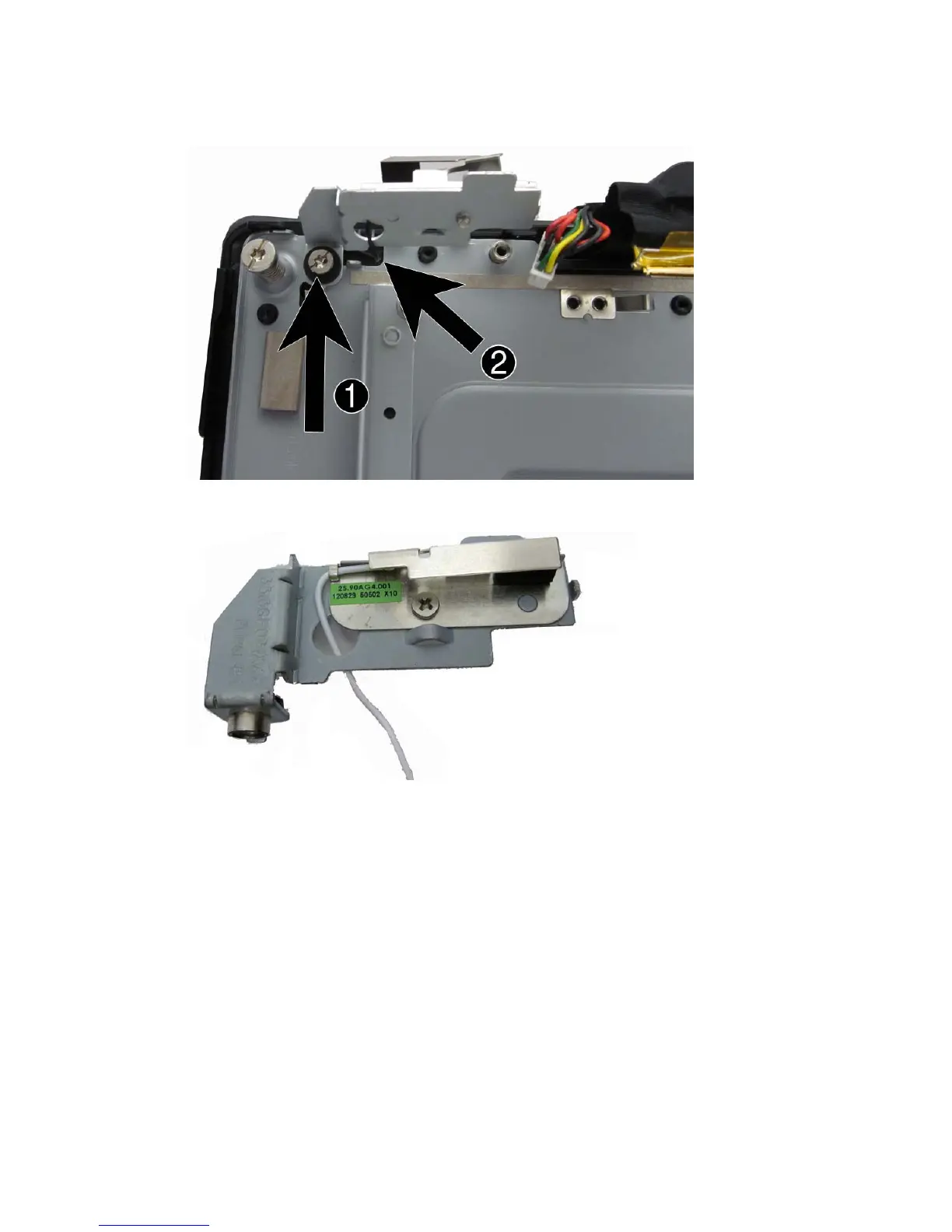 10. Remove the Torx screw (1) that secures the white antenna bracket to the computer, and then