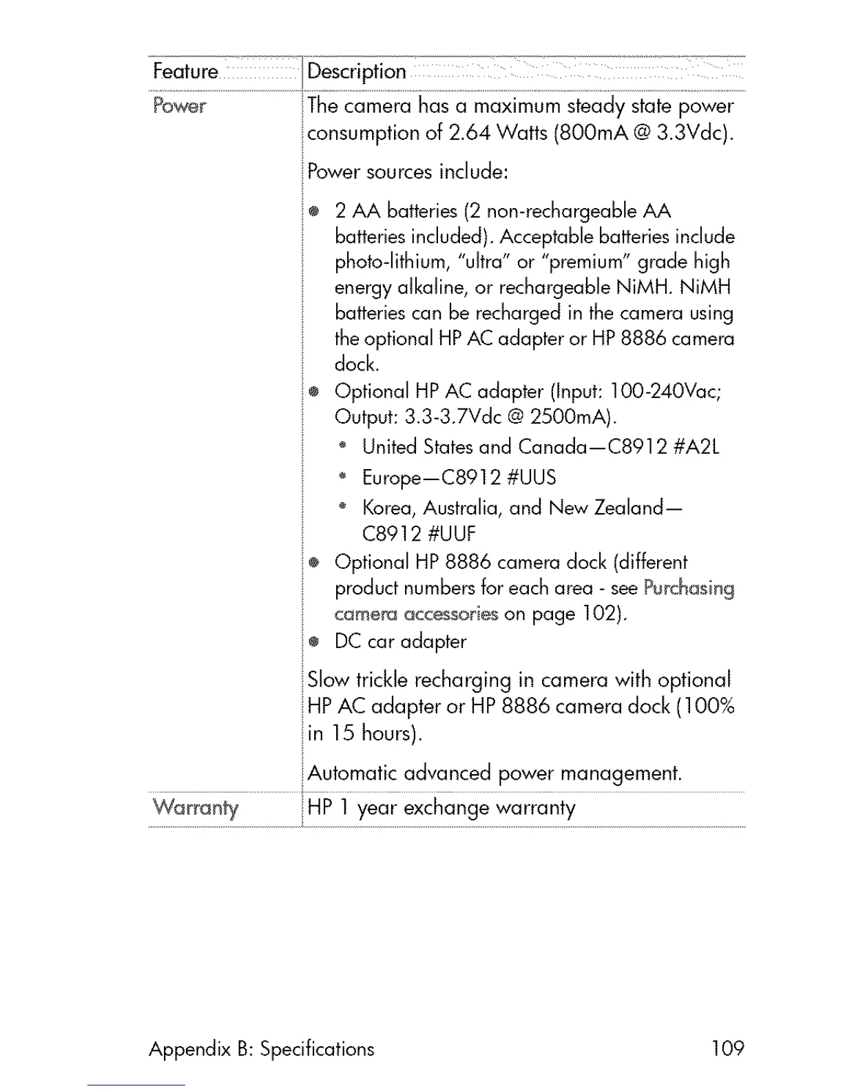iHP AC adapter or HP 8886 camera dock (100%