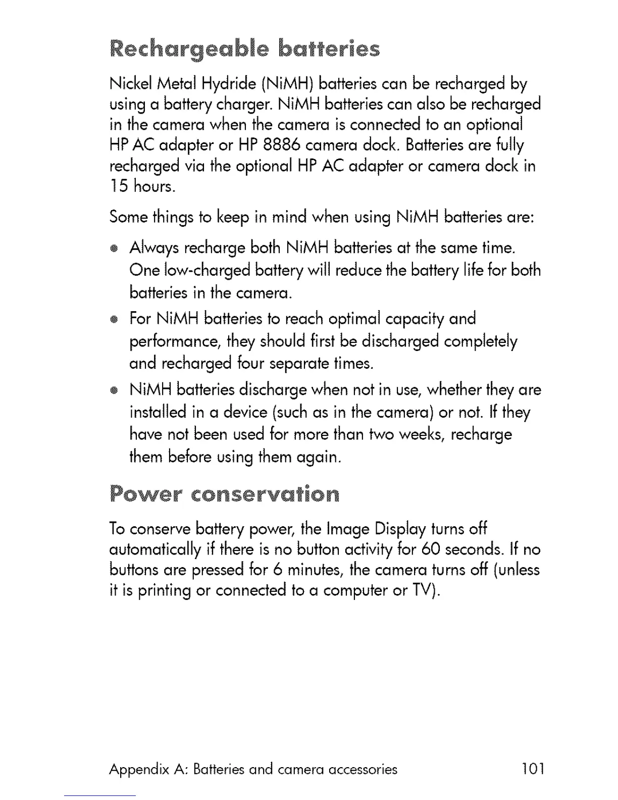 using a battery charger. NiMH batteries can also be recharged