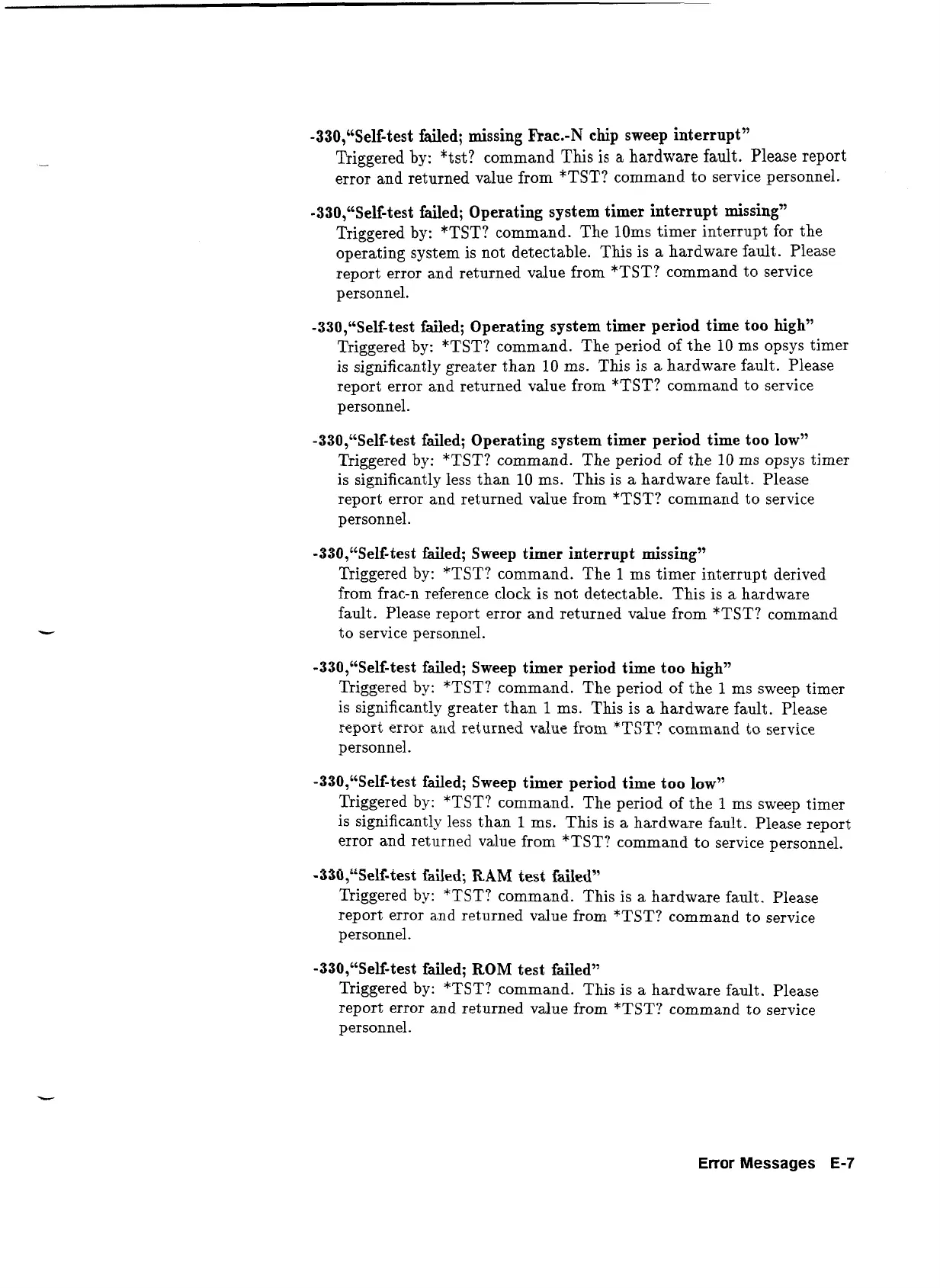 -330,"Self-test failed; Sweep timer interrupt missing"
