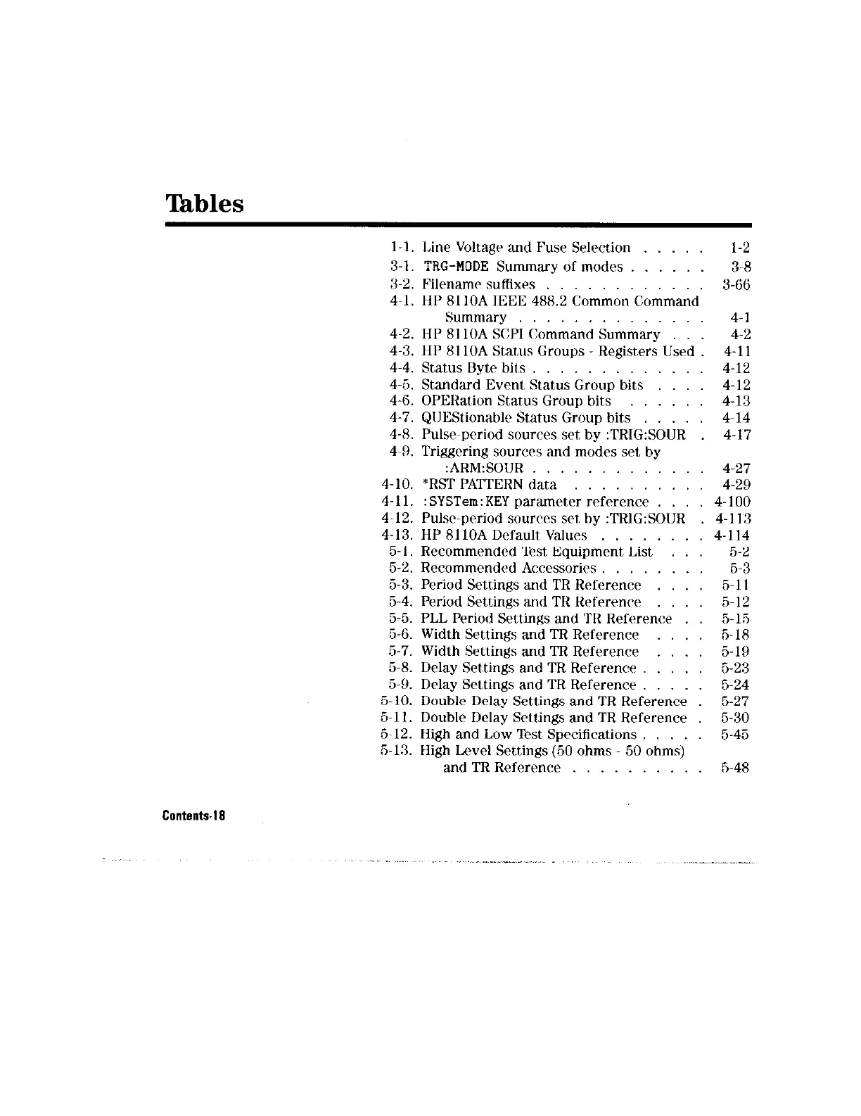 Period Settings and TR Reference 5-l I