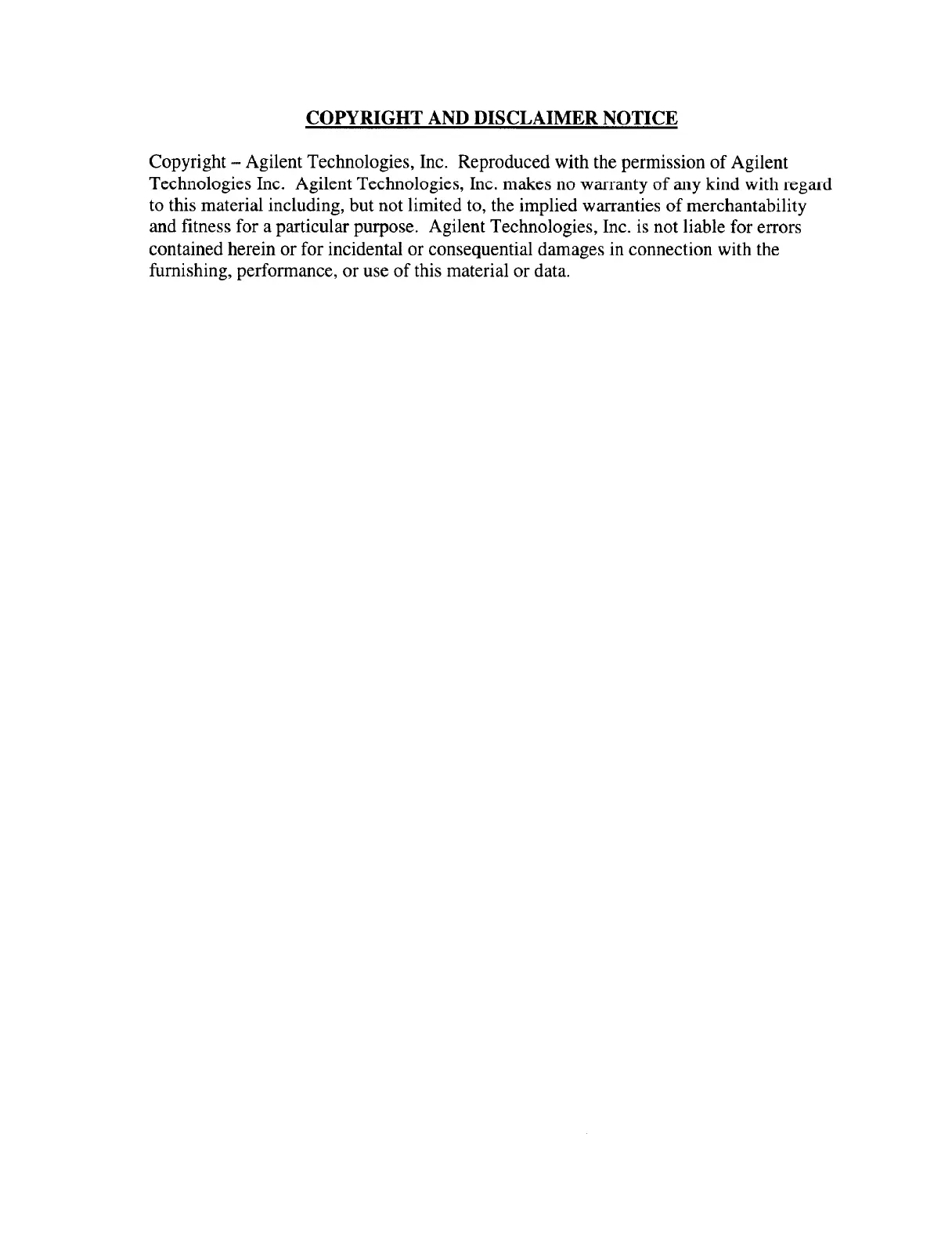 and fitness for a particular purpose. Agilent Technologies, Inc. is not liable for errors