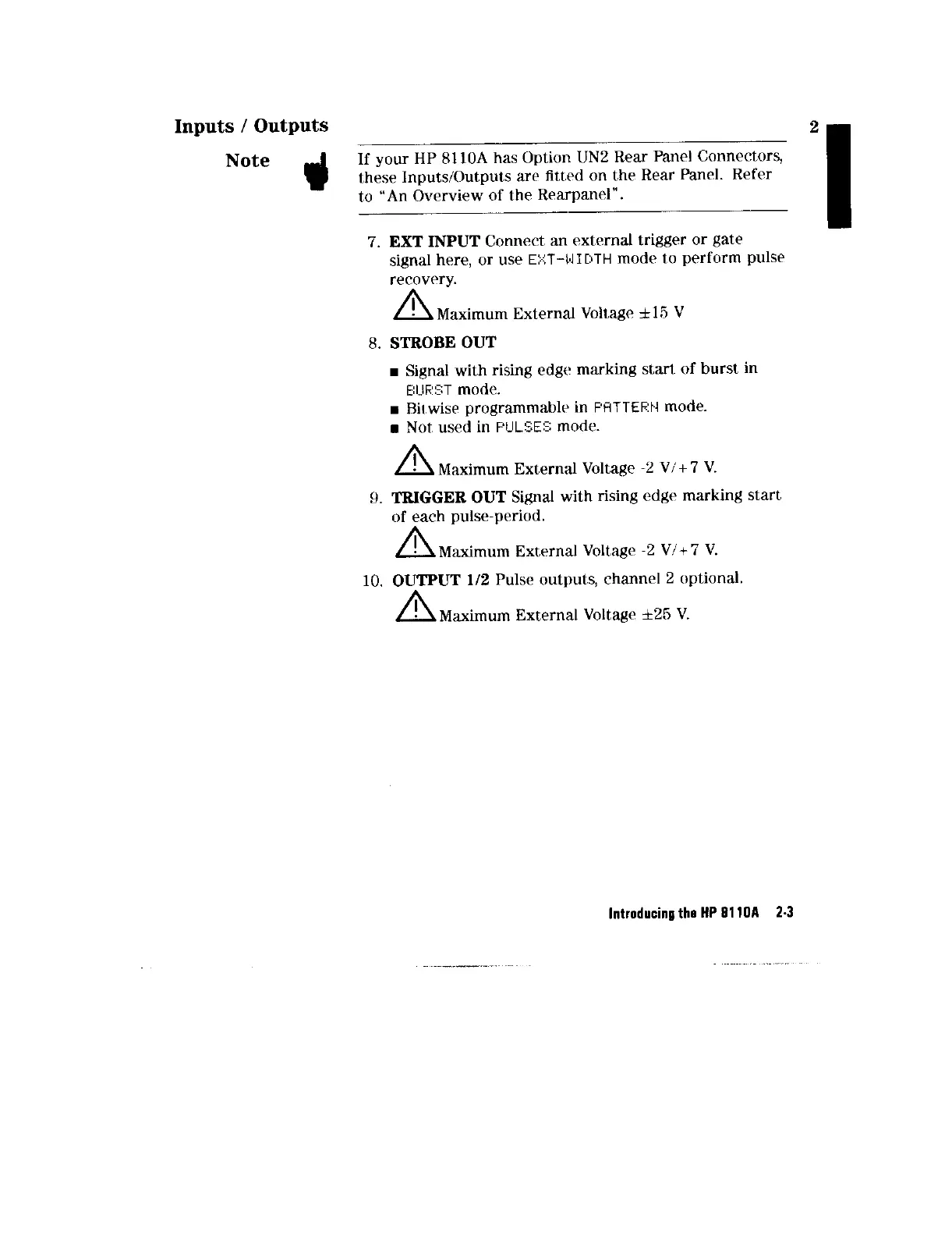 HP 8110A - Inputs; Outputs