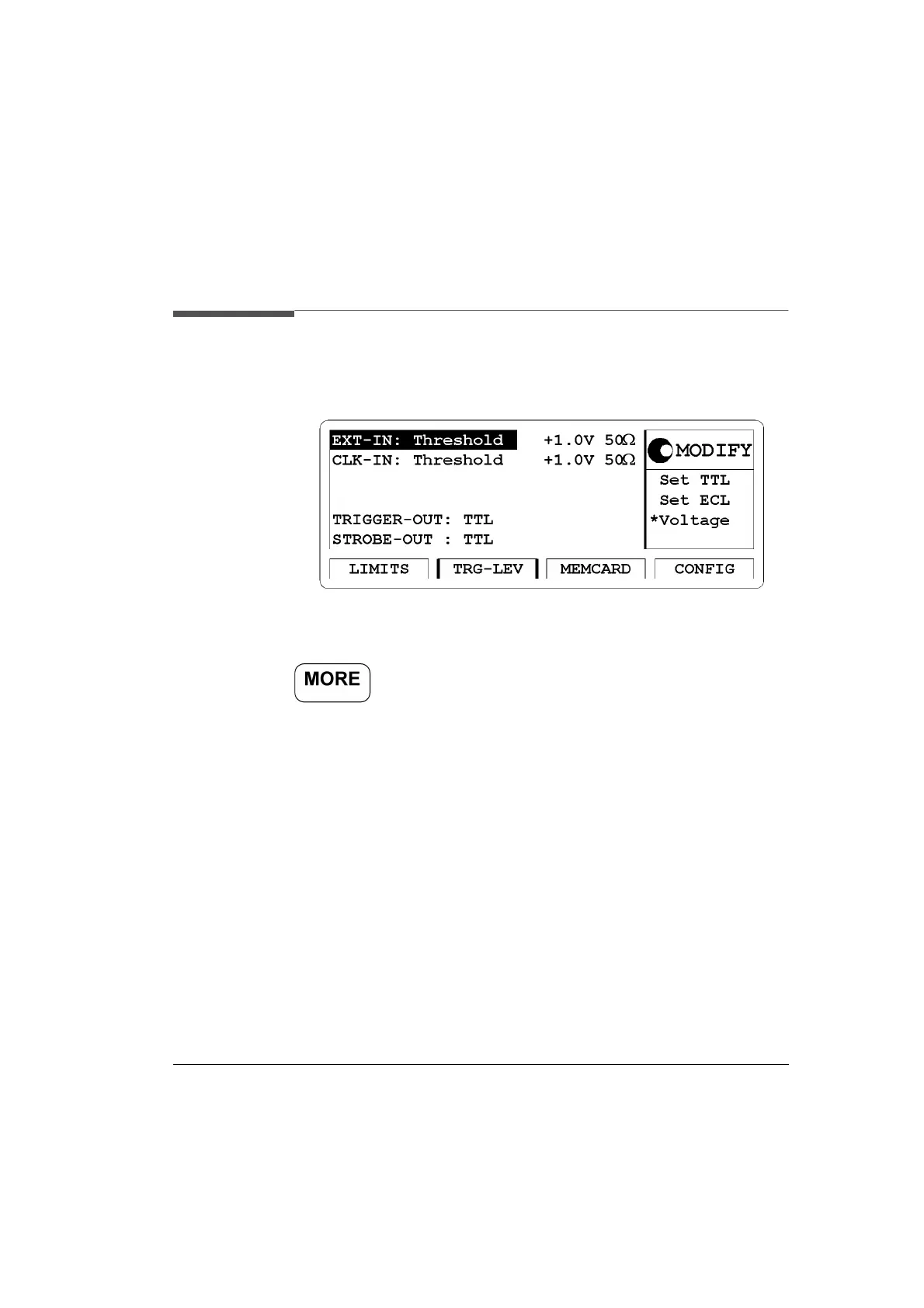 Access the trigger level (TRG-LEV) menu screen by pressing the