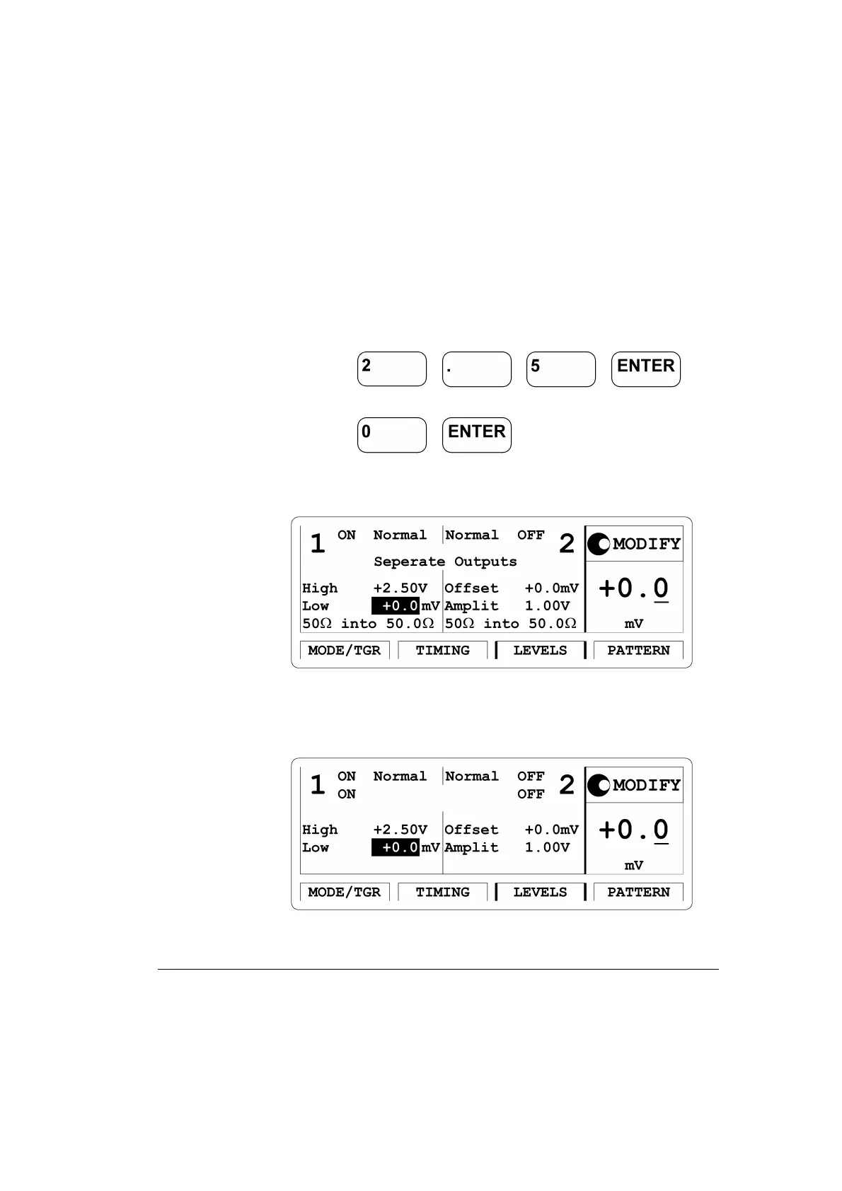 high level and move down the Entry Focus to the low level entry field