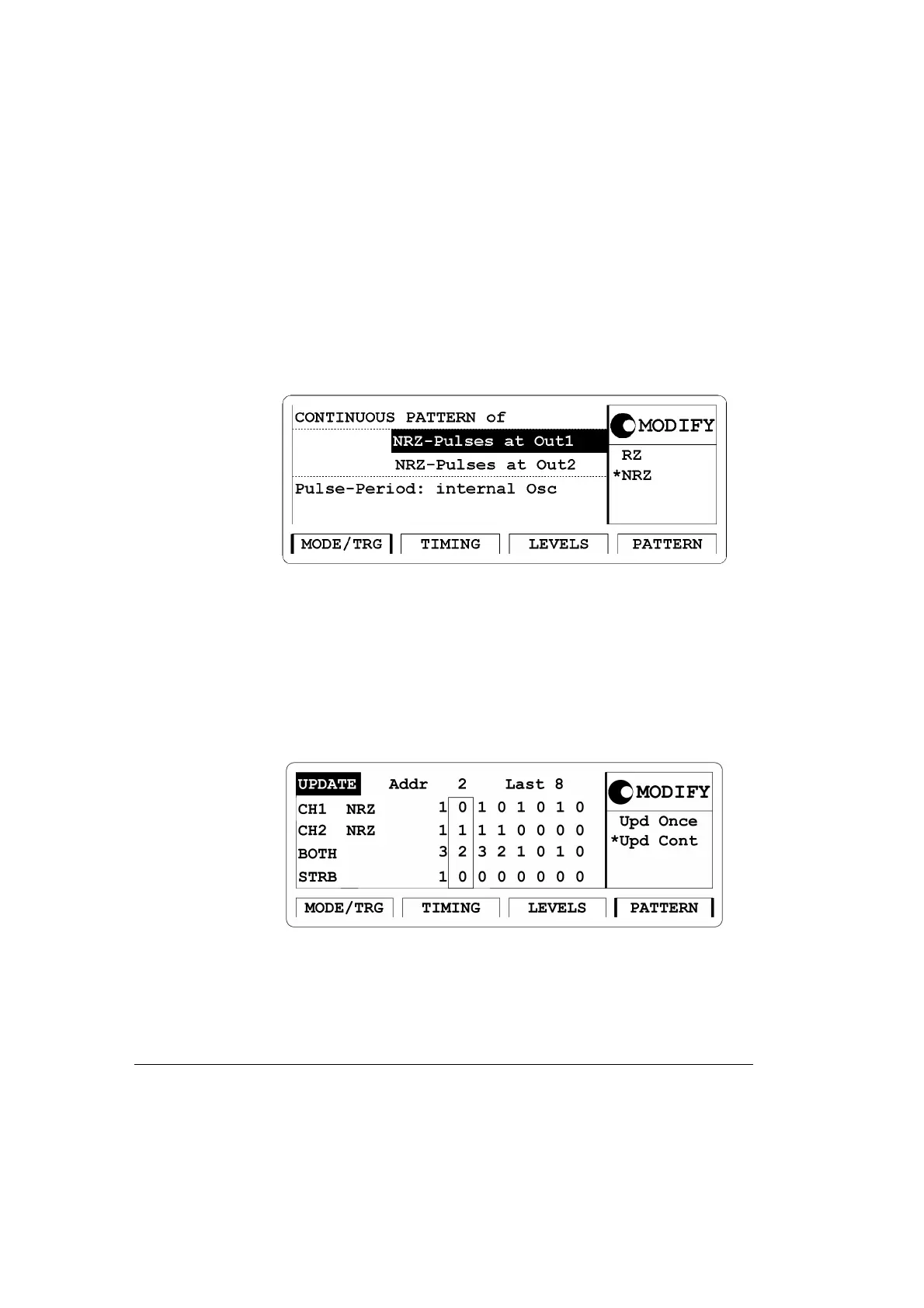 Pattern of with NRZ-PULSES at OUT 1 & OUT 2.