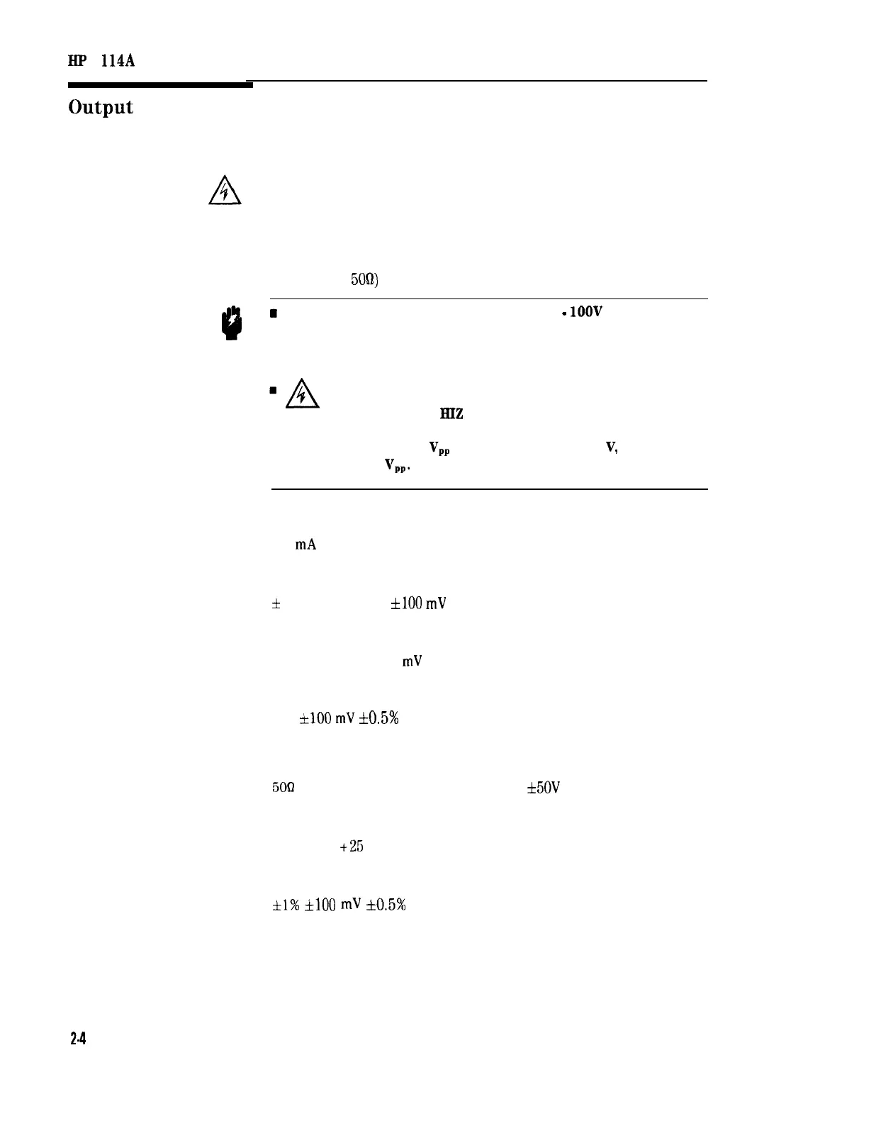 therefore be taken when connecting the HP 8114A to external