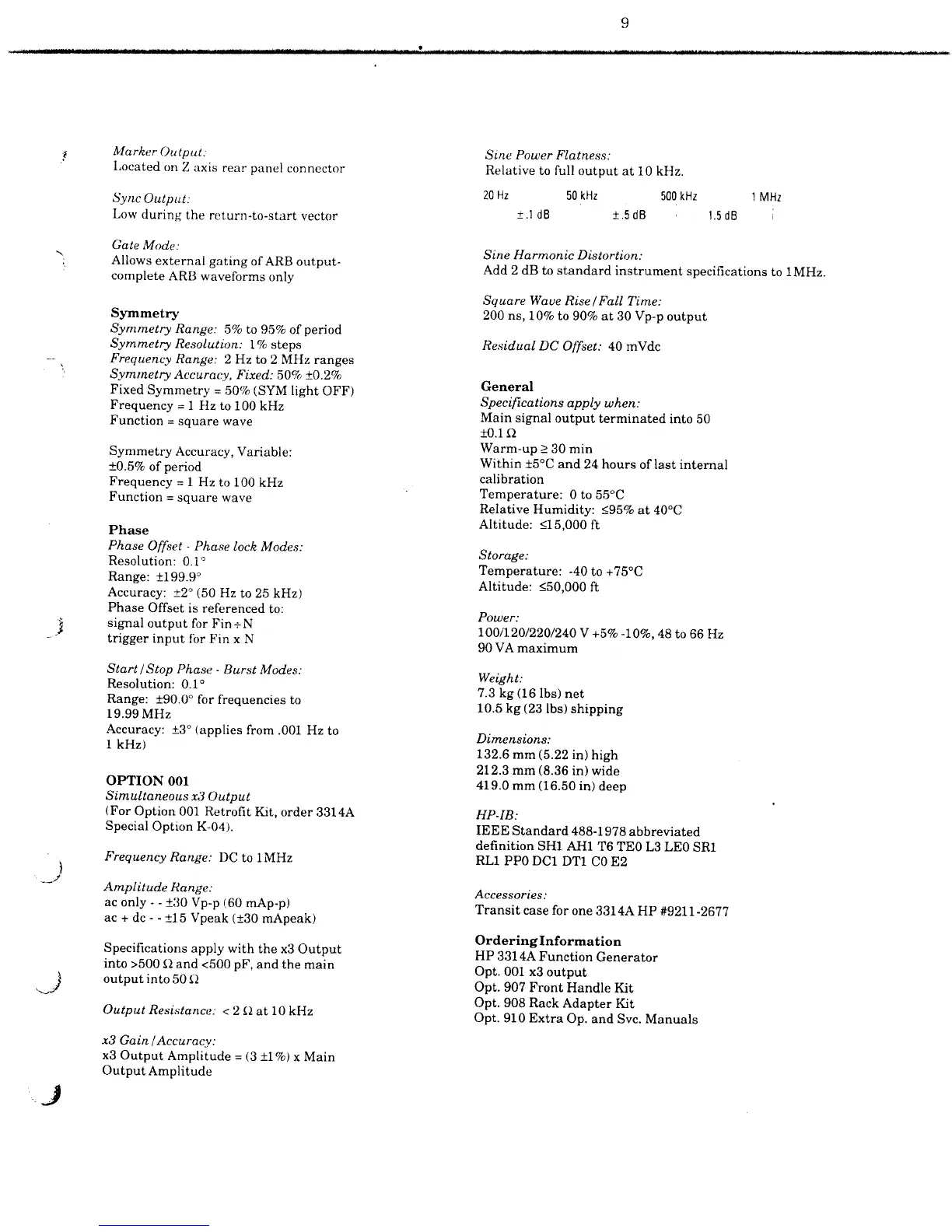 HP 8116A - General Specifications and Ordering