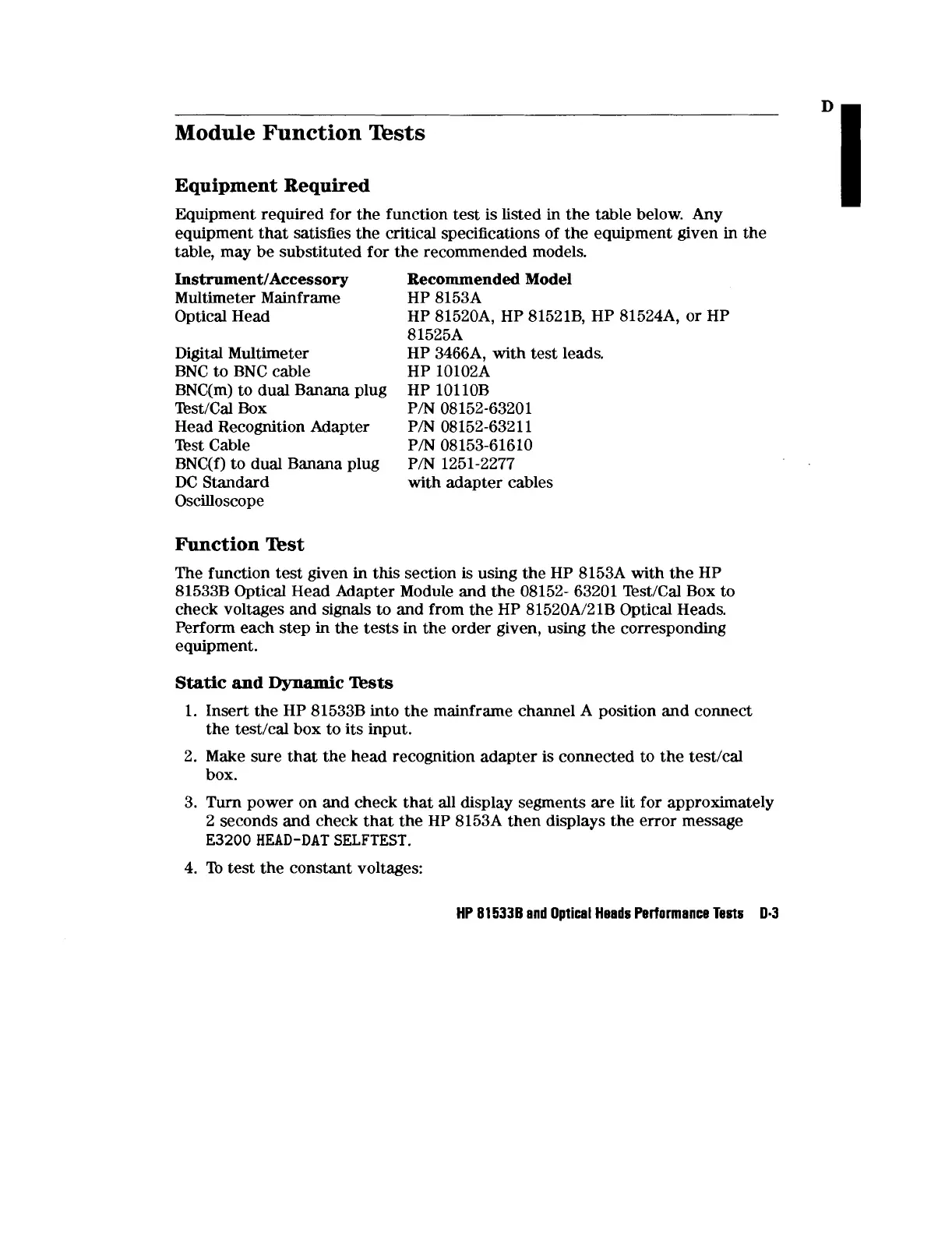 check voltages and signals to and from the HP 81520Al21B Optical Heads.