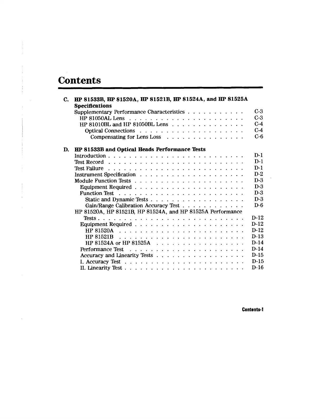HP 81520A. HP 81521B. HP 81524A. and HP 81525A Performance