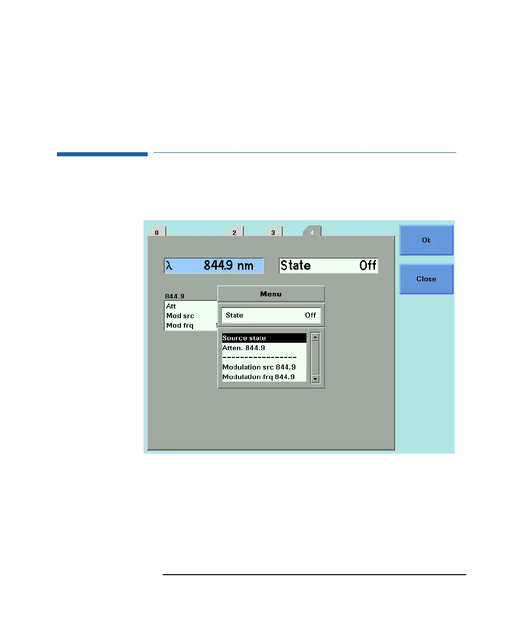 Figure 4-1 Menu of Parameters for a Fixed Wavelength Laser Source