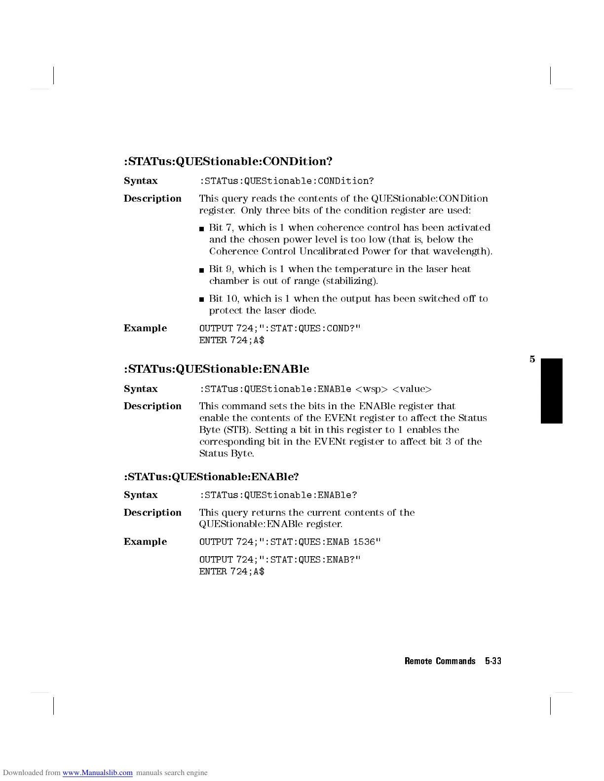 OUTPUT 724;":STAT:QUES:ENAB?"