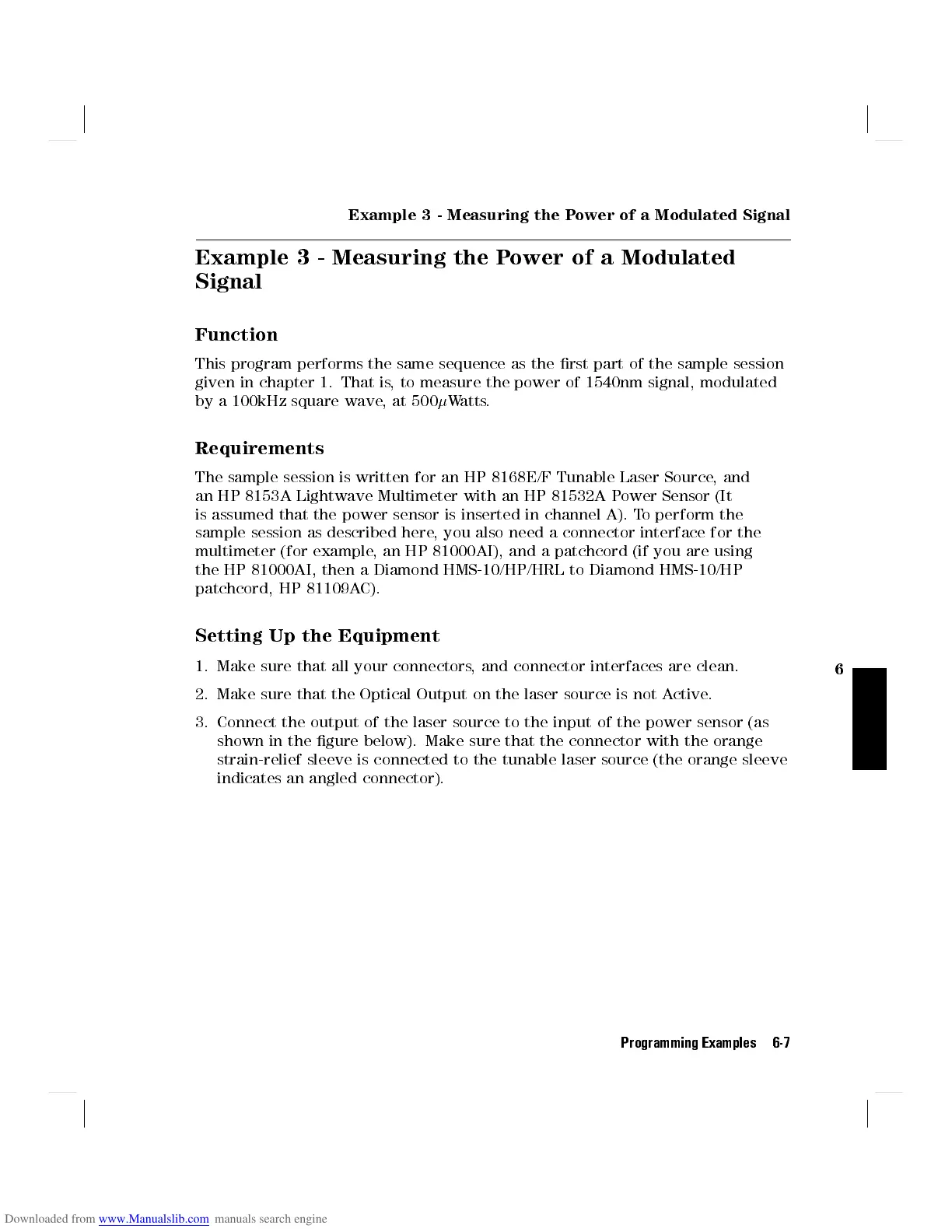 The sample session is written for an HP 8168E/F Tunable Laser Source, and
