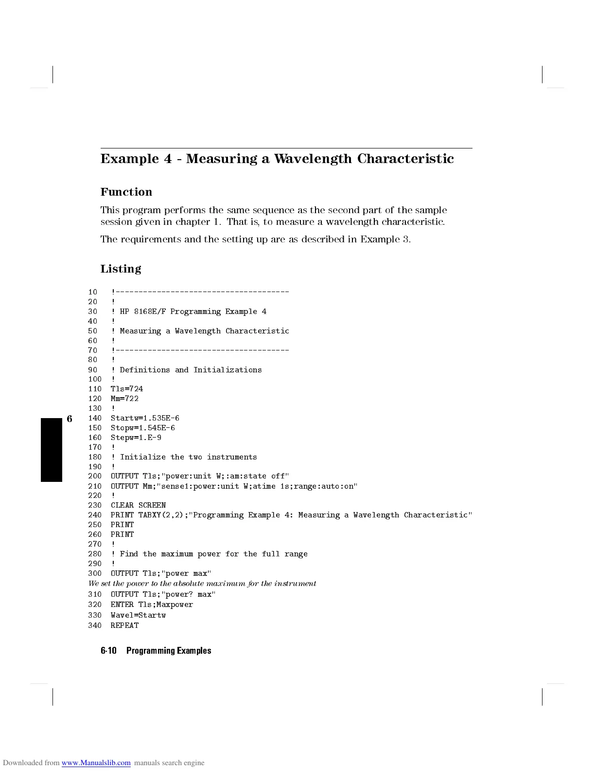 30 ! HP 8168E/F Programming Example 4
