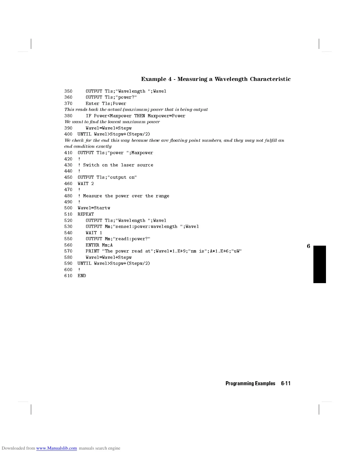 350 OUTPUT Tls;"Wavelength ";Wavel