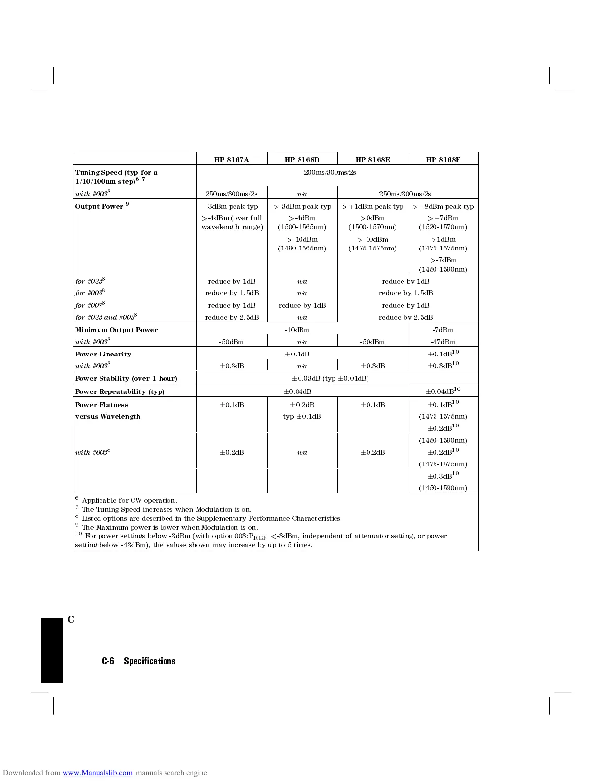 HP 8167A HP 8168D HP 8168E HP 8168F