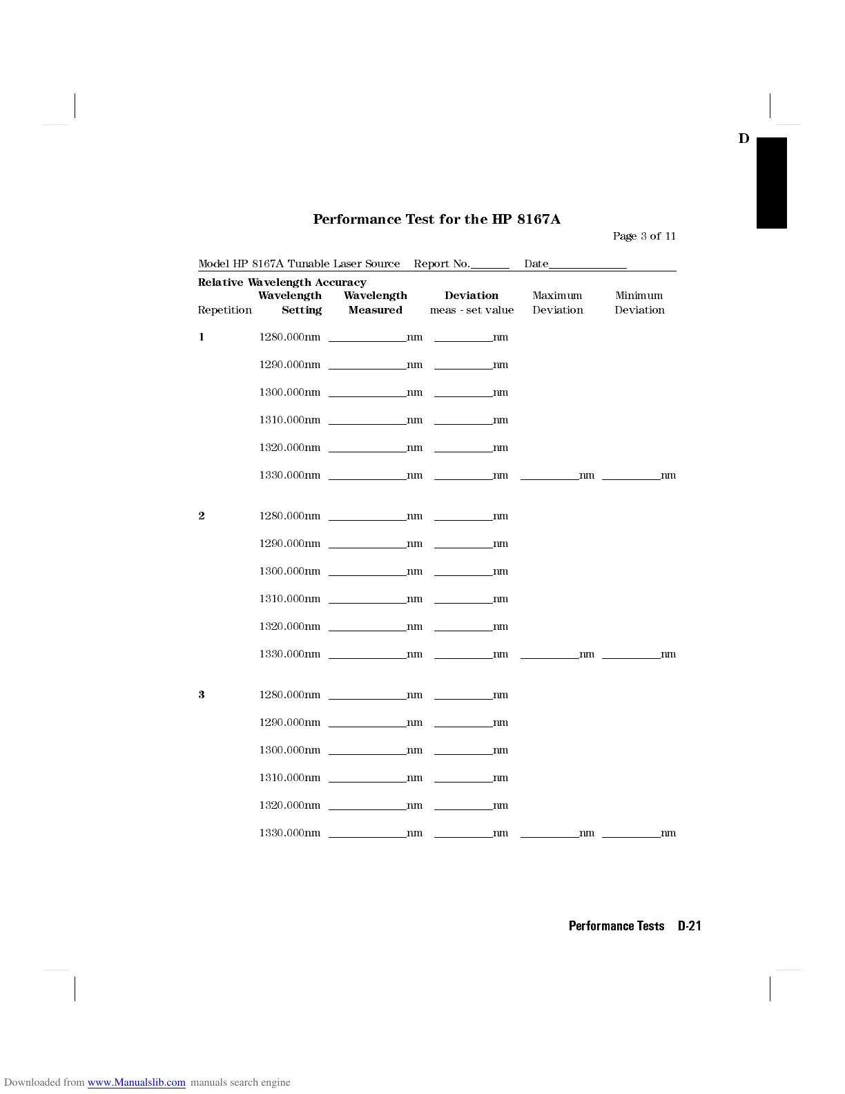 Model HP 8167A Tunable Laser Source Report No. Date