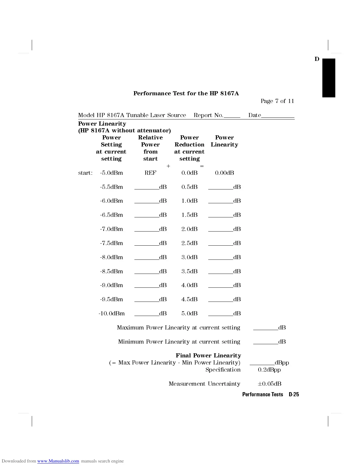 Model HP 8167A Tunable Laser Source Report No. Date