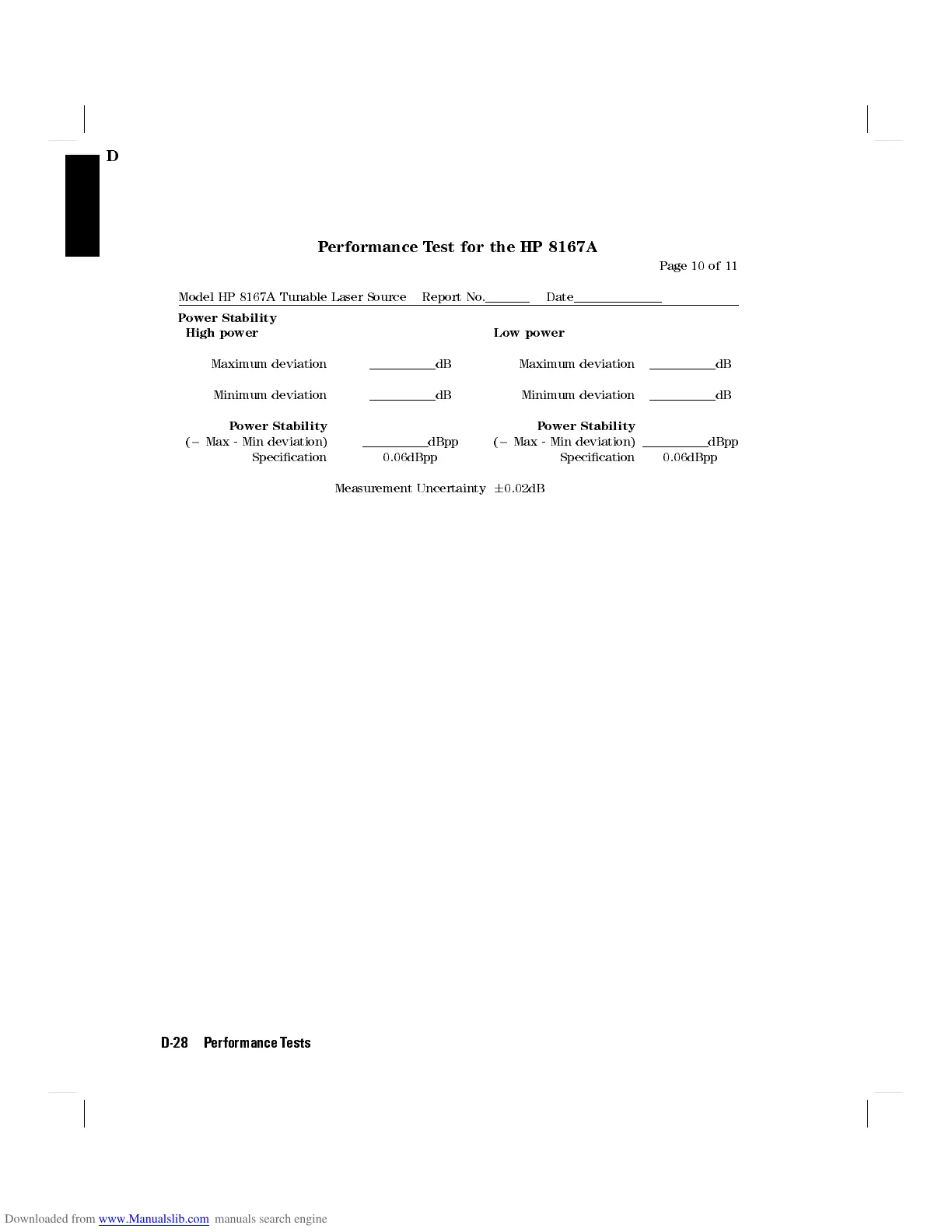 Model HP 8167A Tunable Laser Source Report No. Date