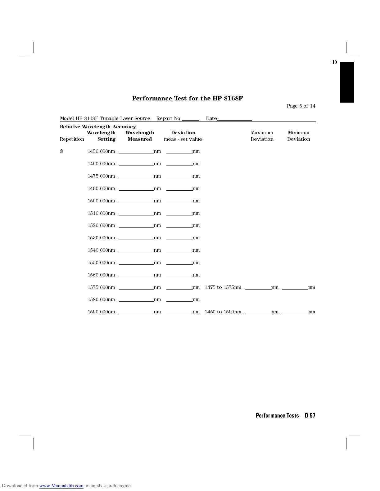 Model HP 8168F Tunable Laser Source Report No. Date